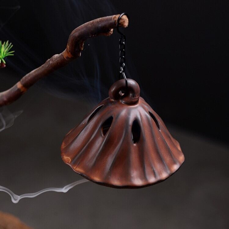 吊り下げタイプのデザインは、空間に軽やかさを与えるだけでなく、香りが全体に広がるよう工夫されています。蓮の実の形状が、調和や平和を象徴すると信じられており、心を落ち着ける瞑想やリラクゼーションのひとときに最適です。風水的には、香炉は場を浄化し、気の流れを整えるアイテムとされることから、家庭やオフィスに良いエネルギーをもたらすと考えられています。