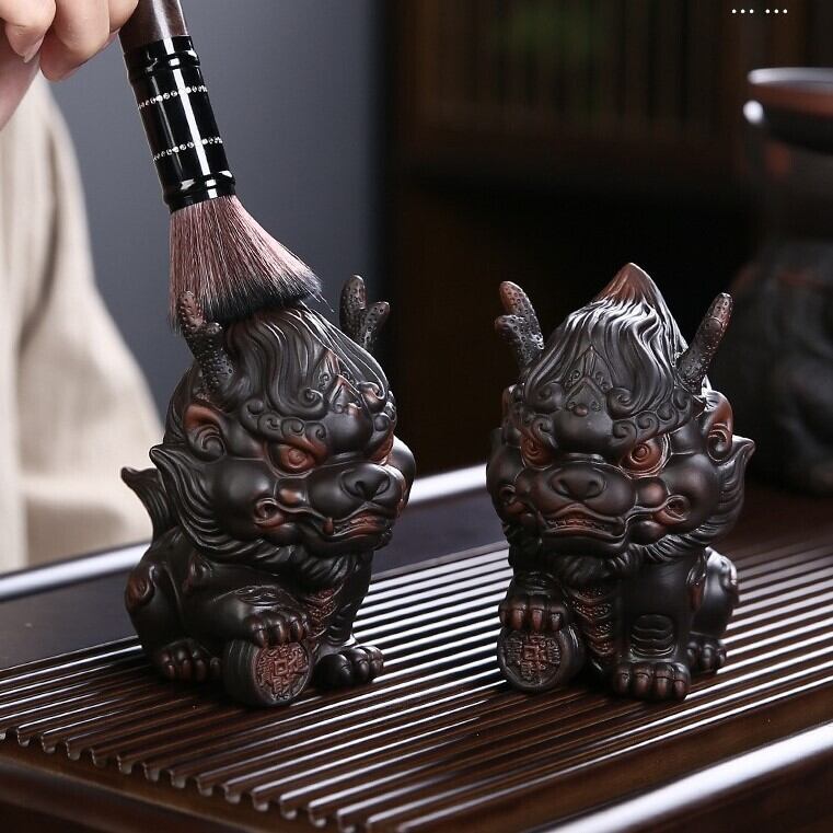 小ぶりで可愛らしいデザインのこの麒麟置物は、玄関やリビング、書斎などさまざまな場所に調和します。また、紫砂の持つ優雅な質感が空間に洗練されたアクセントを加え、インテリアとしても高い価値を発揮します。