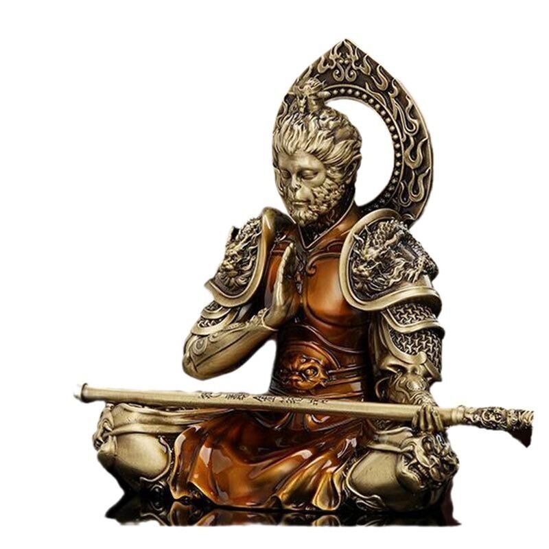 孫悟空は、中国の古典文学「西遊記」に登場する伝説的な英雄であり、勇気と知恵、守護の象徴として広く親しまれています。この豪華な合金製の置物は、祈りを捧げる姿を再現し、その力強さと静謐な佇まいが調和したデザインとなっています。