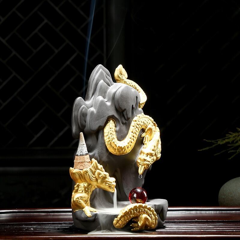 逆流香炉は、特別な逆流香を使うことで煙が下へと流れ、滝のような幻想的な演出を生み出します。龍の彫刻を包む煙は、まるで雲の中を漂う龍を思わせ、空間に神秘的な雰囲気を与えてくれるでしょう。