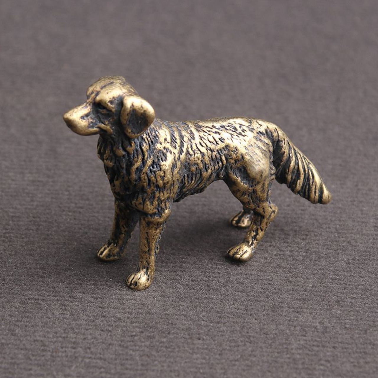 黄銅で丁寧に鋳造された牧羊犬の置物です。表面はアンティーク調の仕上げが施され、落ち着きと高級感を漂わせます。犬は古来より忠誠心と勇気の象徴であり、風水においては家庭や財産を守る守護獣として知られています。
