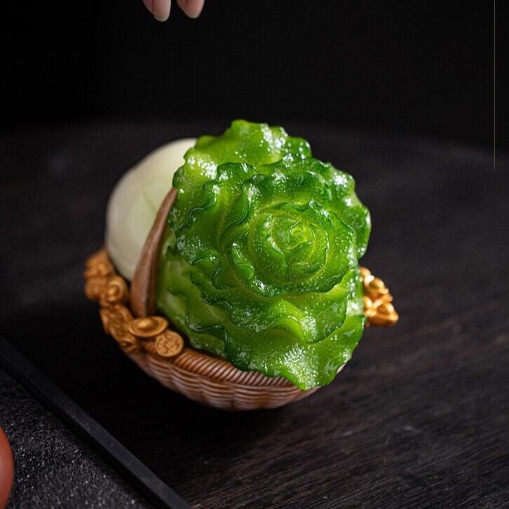 この白菜の置物は、インテリアとしても魅力的であり、ギフトとしても喜ばれるアイテムです。持ち主に幸運や繁栄をもたらし、日々の生活に温かさを加えることができるかもしれません。心豊かな空間を作り出すために、この美しい置物をお手元に取り入れてみてはいかがでしょうか?