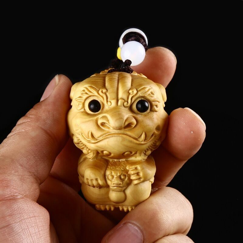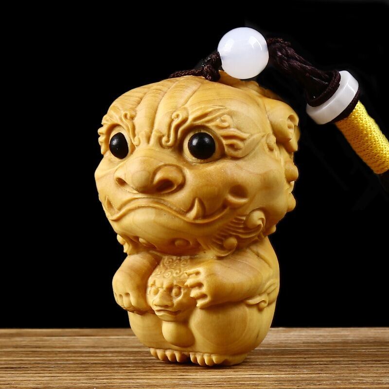精緻に彫刻された木製の獅子をモチーフにしたペンダントです。獅子は、古来より東洋を中心に神聖視され、強さや守護の象徴とされています。その堂々とした姿と力強い存在感は、古くから守護神や家の守り神として崇められ、悪い運気を追い払い、良い運を引き寄せると言われています。