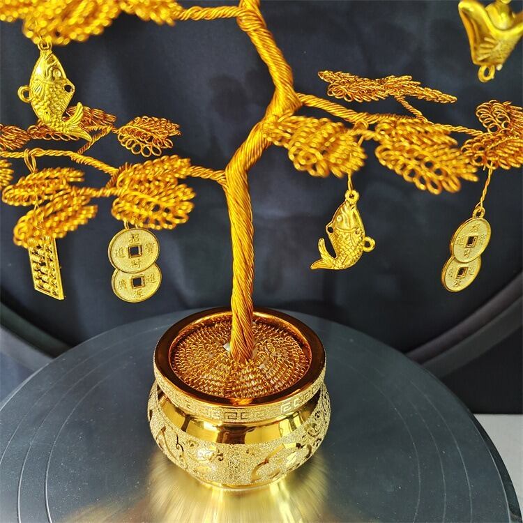 豊かさや繁栄を象徴する風水アイテムとして、古くから愛されてきました。このオブジェは、金色に輝く木のデザインが特徴で、枝に実った金貨が、まるで無限に広がる財運を象徴しているようです。