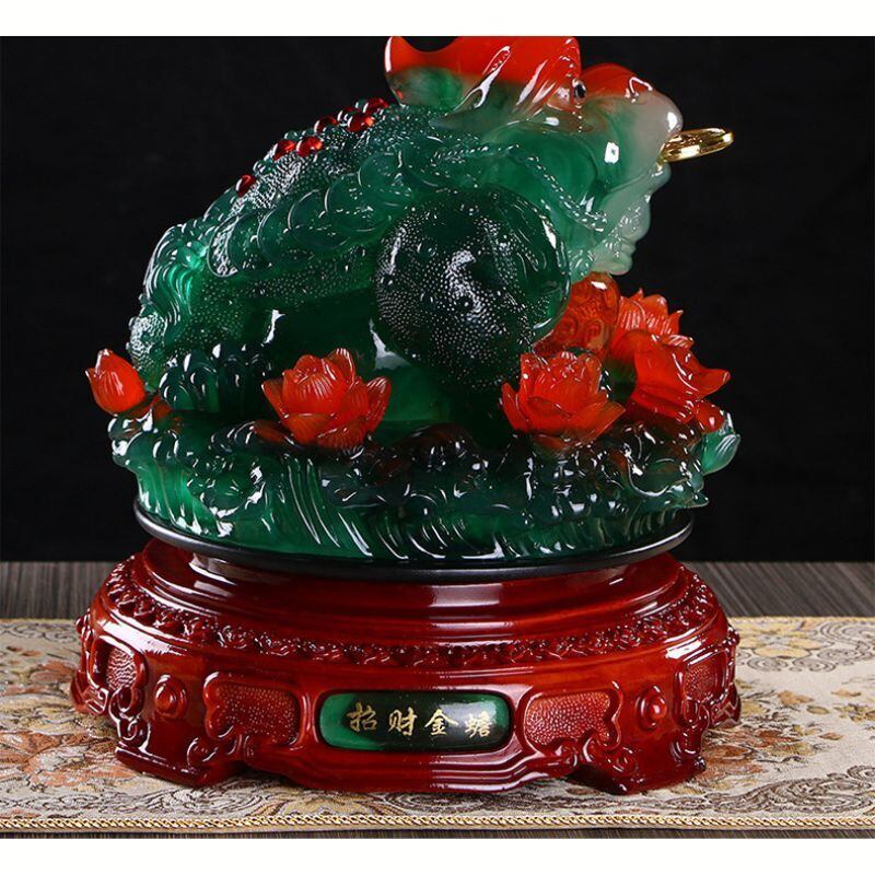この金蟾は三本足を持つ蛙の姿で表され、口には金貨をくわえ、蓮花や宝物の上に鎮座する姿は「福徳と財運を招く」象徴とされています。特に大号サイズは存在感があり、家やオフィスの守り神として、またお店のインテリアや開業祝いの贈り物として最適です。