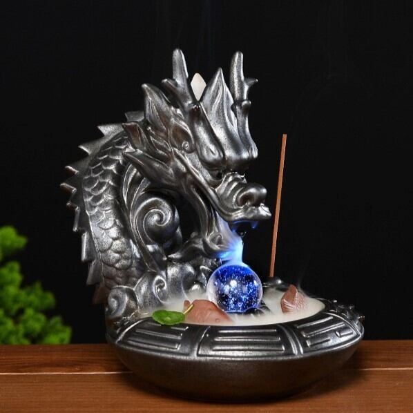 風水では、龍は強大なエネルギーをもたらし、運気を向上させる存在と信じられています。この逆流香炉は、その龍の姿を通して、空間に浄化と調和をもたらす助けになるかもしれません。香炉から立ち昇る煙が優雅に逆流し、まるで龍が珠を守護するかのような美しい光景を楽しむことができます。
