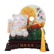 かわいらしい笑顔で幸運を招く「招財猫」と、平安や調和を象徴する「平安扣」が組み合わされた、縁起の良い置物です。白い招財猫は「清浄・幸運」を意味し、手に持つ金元宝は豊かな財を呼び込むシンボルとされています。にっこりと微笑む姿は、見る人の心を和ませ、家やお店に明るい雰囲気をもたらしてくれるでしょう。