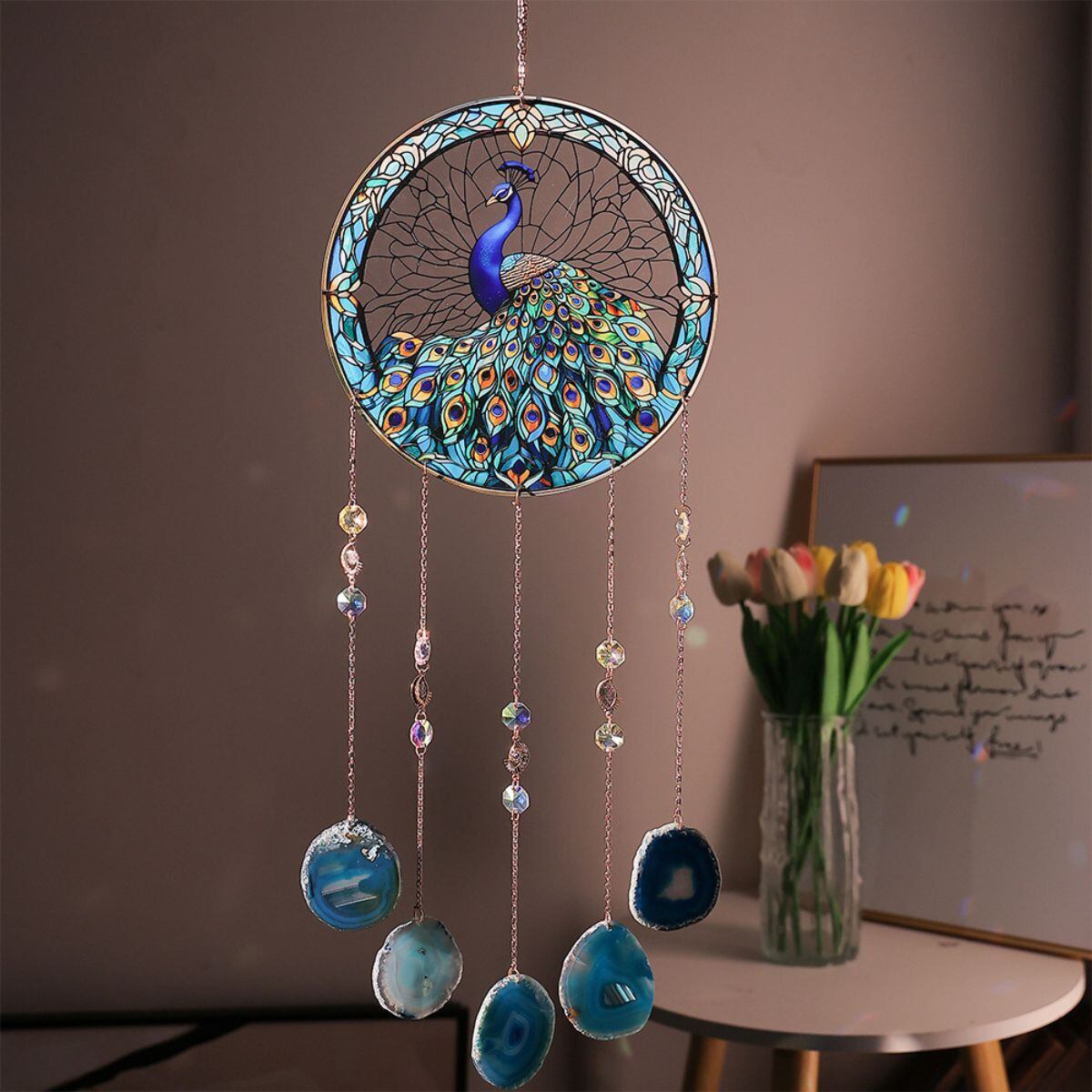 メノウ アゲート 孔雀 サンキャッチャー 天然石風 幸運 引き寄せ パワーストーン 天然瑪瑙 愛情運 恋愛運 繁栄運 仕事運 健康運 結婚運 金運 成功運 心の癒し スピリチュアル クリスタル インテリア ギフト プレゼント 吊り下げ飾り | 幸せの置場