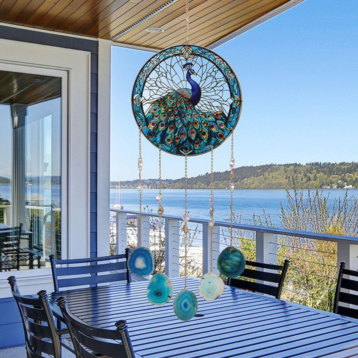 美しい孔雀が描かれた新感覚のサンキャッチャー兼ドリームキャッチャー。太陽の光を受けて七色の輝きを放ち、空間を華やかに彩りながら、風水的には「邪気を払い、幸運を呼び込む」アイテムとして人気を集めています。