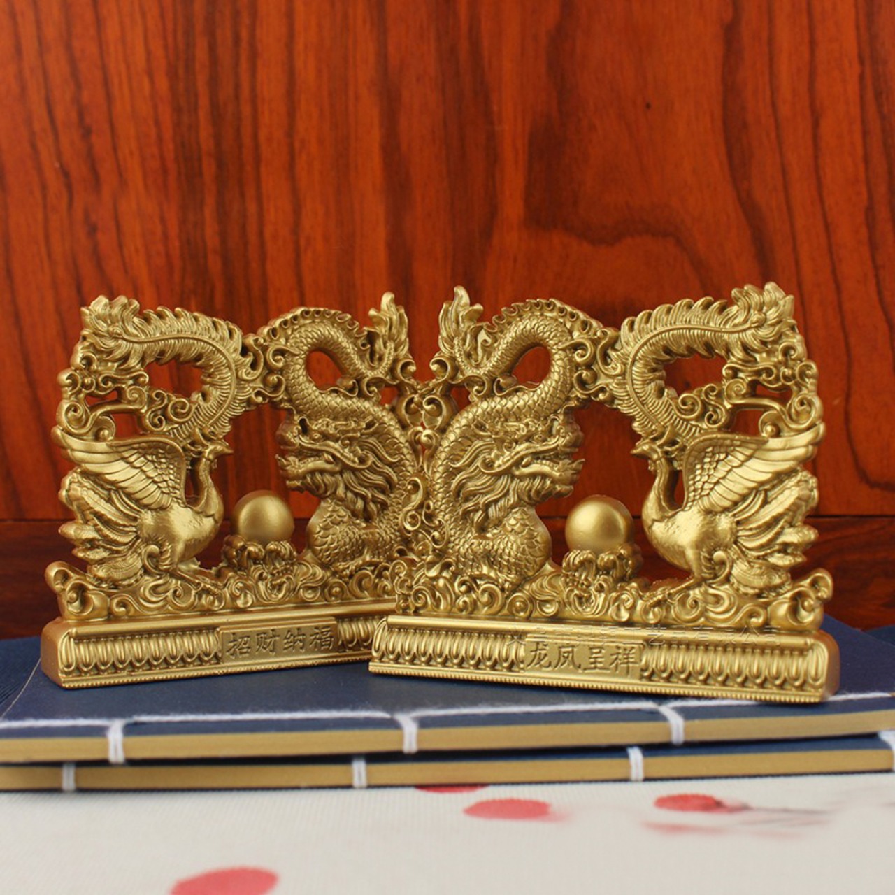 力強さと調和を象徴する龍と鳳凰をモチーフにした豪華なオブジェです。金色の輝きが目を引き、空間全体を洗練された雰囲気で包み込みます。このオブジェは、風水や東洋の伝統において特別な意味を持つ龍と鳳凰を、一つの作品として調和させた逸品です。