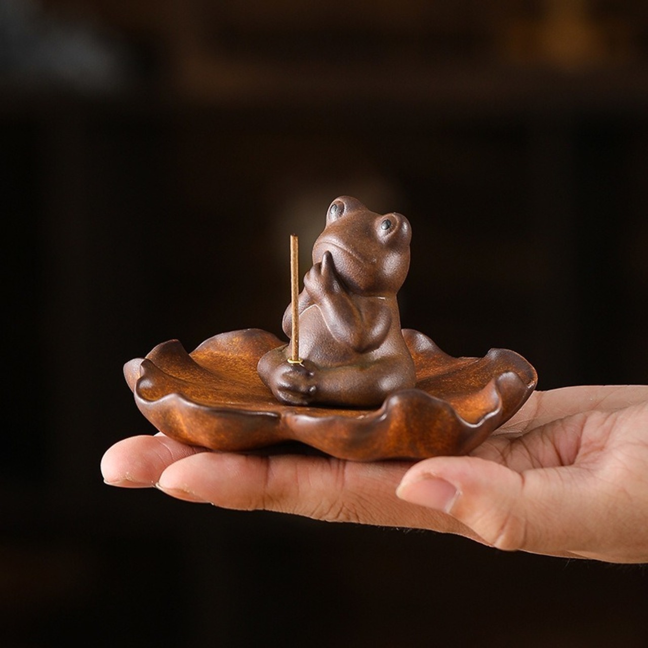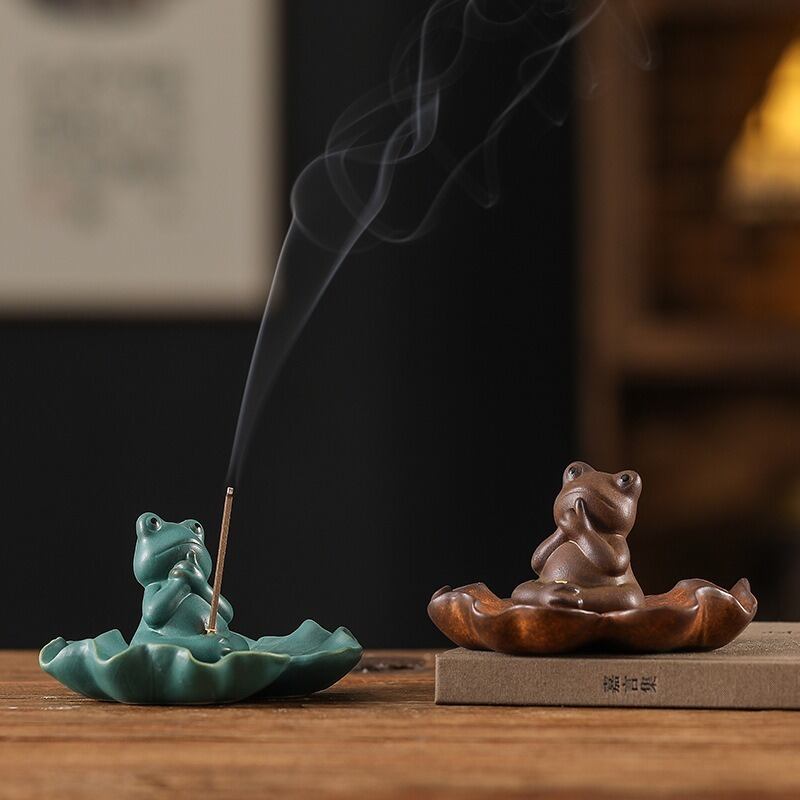 また、蛙は水の中に住む生き物として、古来から「水の気」を持ち、浄化や清めの力があると信じられています。お香の煙が蛙の形をしたお香立てから立ち上ることで、空間が清らかになり、心身ともにリラックスした状態へと導いてくれることでしょう。お香の香りと蛙のエネルギーが組み合わさることで、日常に穏やかな幸運が流れ込み、ポジティブな変化をもたらすお手伝いをしてくれるかもしれません。