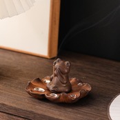 可愛らしさと縁起の良さを兼ね備えたお香立てです。蛙は、古代から多くの文化において幸運や繁栄の象徴とされており、特に東洋では「財運を呼ぶ」と信じられています。日本や中国では、蛙が「帰る」という意味を持つことから、良い運気が帰ってくる象徴とされ、商売繁盛や家内安全を願う人々に親しまれています。