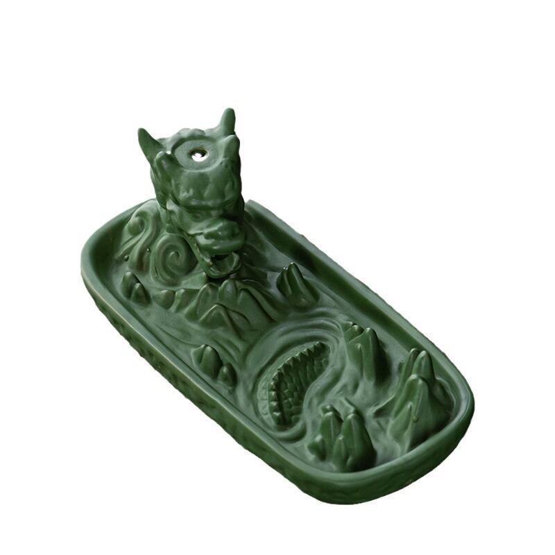 逆流香炉 香炉 お香 線香 龍 竜 ドラゴン 緑 グリーン 風水グッズ 縁起物 贈り物 プレゼント インテリア 玄関 オフィス 高級感 運 開運 商売繁盛 黄金 リラクゼーション 寝室 | 幸せの置場