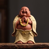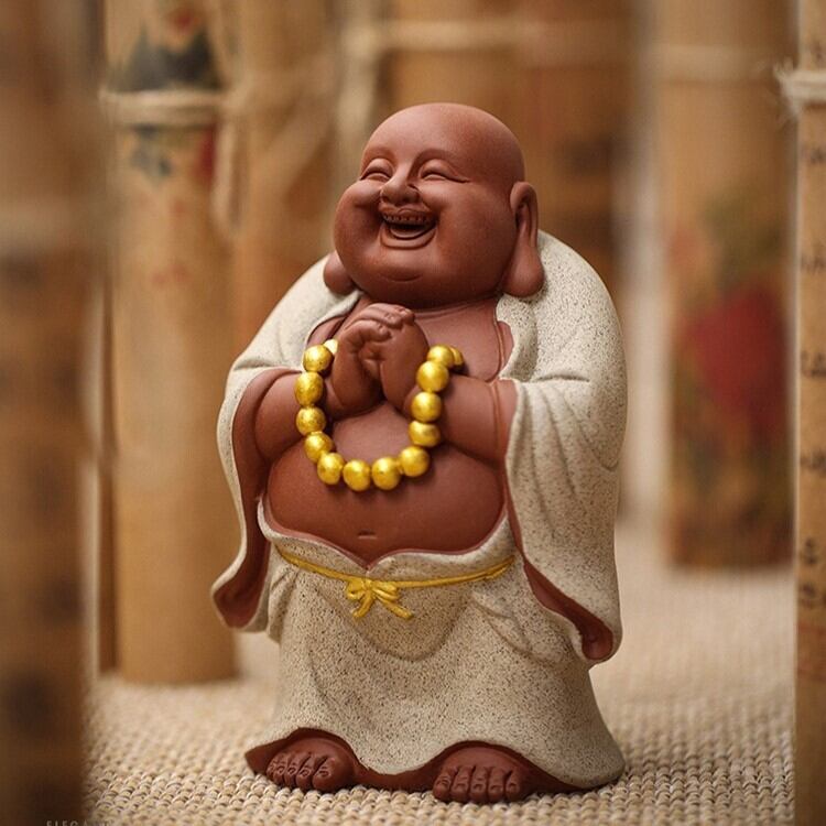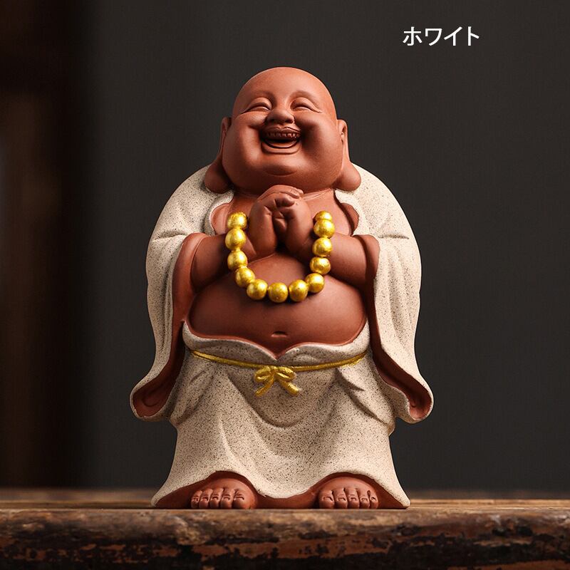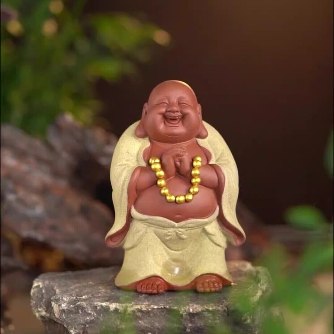 弥勒仏は、苦しみを乗り越え、幸せを手に入れるための「未来の希望」を象徴しています。信仰者たちは、弥勒仏が未来において人々を導き、安心と繁栄をもたらしてくれると信じています。この置物を飾ることによって、ポジティブなエネルギーを家やオフィスに引き寄せ、心の平穏と幸運をもたらすと信じられています。特に金色の差し色は、風水的にも「金運」や「繁栄」を象徴し、生活全体の運気を高める助けとなるかもしれません。