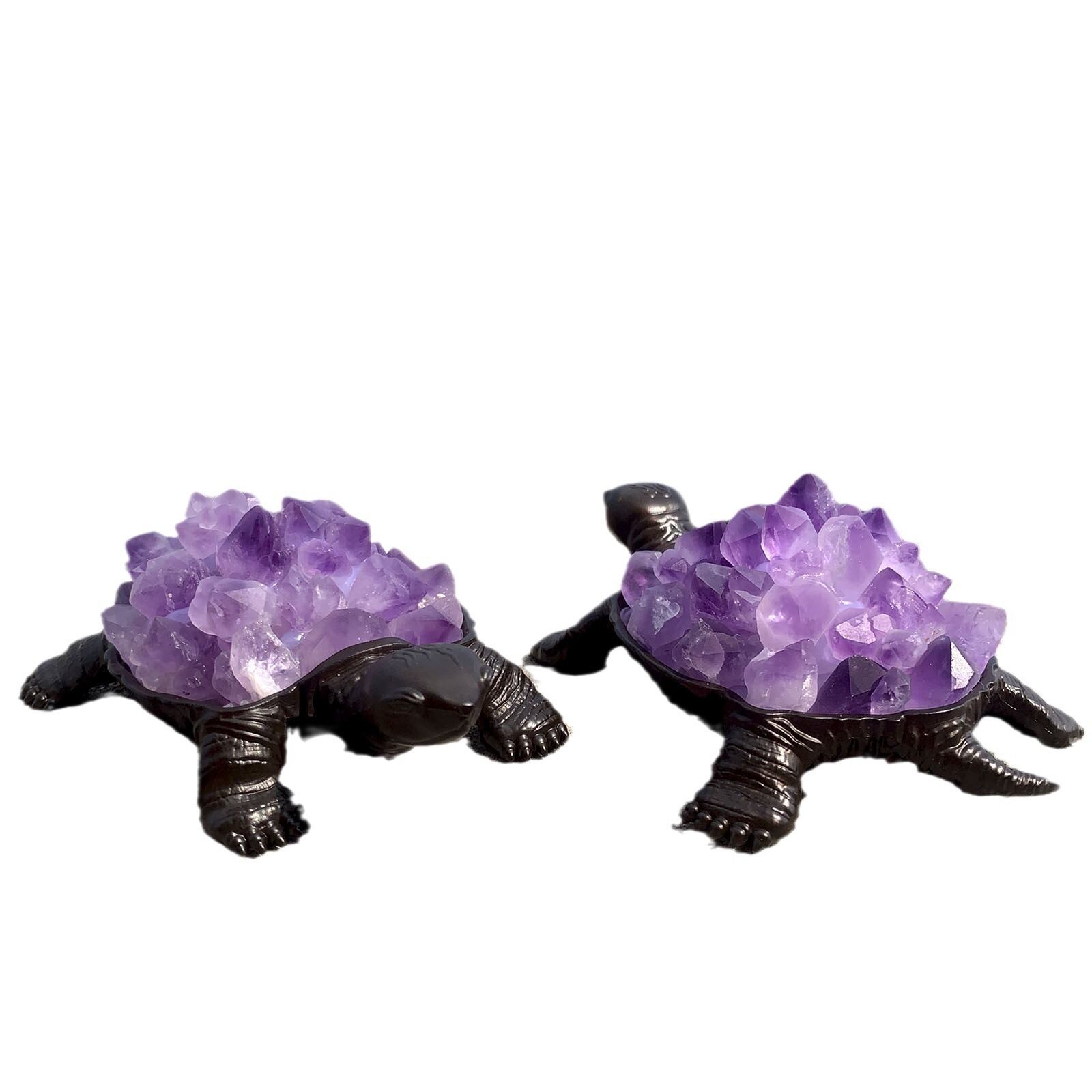 亀の形状とアメジストのクラスターが融合したこのオブジェは、ただのインテリアにとどまらず、あなたの生活空間に癒しと繁栄のエネルギーをもたらしてくれるでしょう。その美しいデザインは、どんな場所にも自然に溶け込み、穏やかな存在感を発揮します。