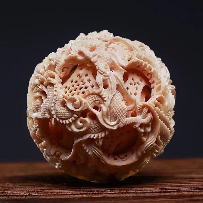 天然マンモス牙 彫刻 置物 オブジェ 鬼工球 精巧彫刻 球体 インテリア オブジェ 幸運 長寿 縁起物 魔除け 厄除 開運 幸運 財運 金運 安産祈願 無病息災 子宝 健康運 リビング | 幸せの置場