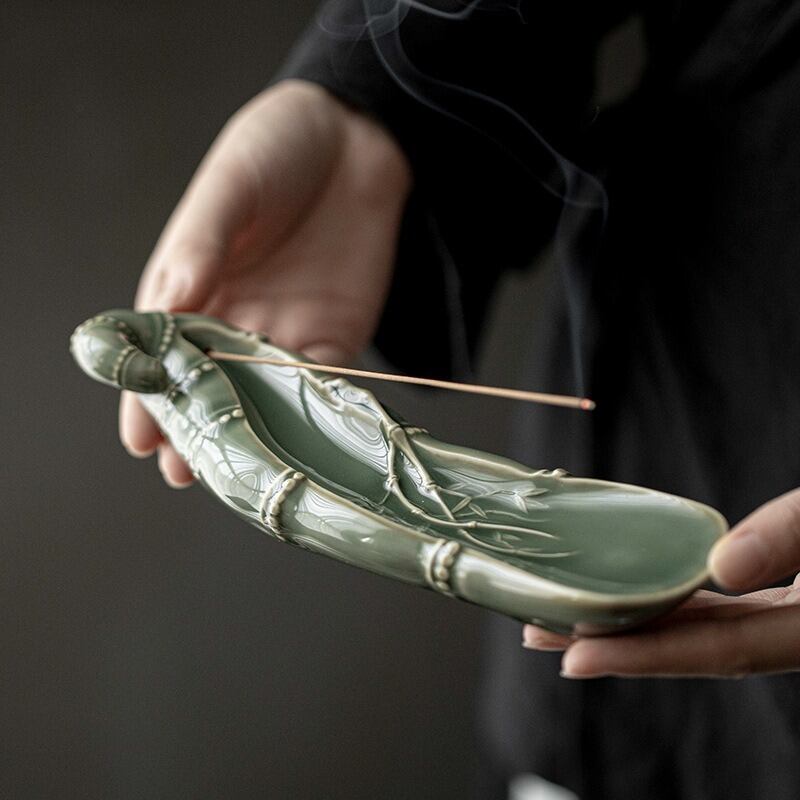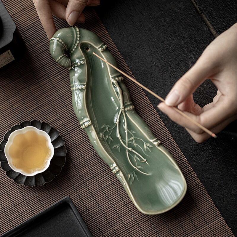 このお香立ては、竹の持つ自然のエネルギーとグリーンの色合いが、空間に調和と清らかな気をもたらします。お香を焚くことで、リラックスできる穏やかな空間を作り出し、心身のバランスを整える手助けとなるかもしれません。特にグリーンの色は、風水においては心を落ち着け、健康や運気を上昇させる色とされています。