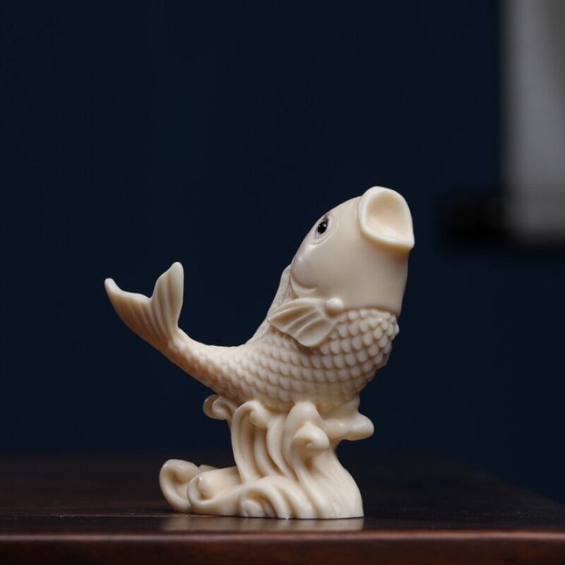 魚は古くから豊かさや繁栄の象徴として、多くの文化や風水の世界で愛されています。その理由は、魚が水と共に暮らし、絶え間なく流れる水が豊かさや生命力を象徴すると考えられているためです。この「魚 置物 ホワイト 象牙果」は、洗練されたデザインと縁起の良い意味合いが調和した一品です。