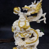 風水では、布袋様とドラゴンの組み合わせが、幸福や富を呼び寄せる存在として親しまれています。この置物をリビングや玄関に飾ることで、運気を高め、家庭やビジネスの調和を願う気持ちを込められるかもしれません。