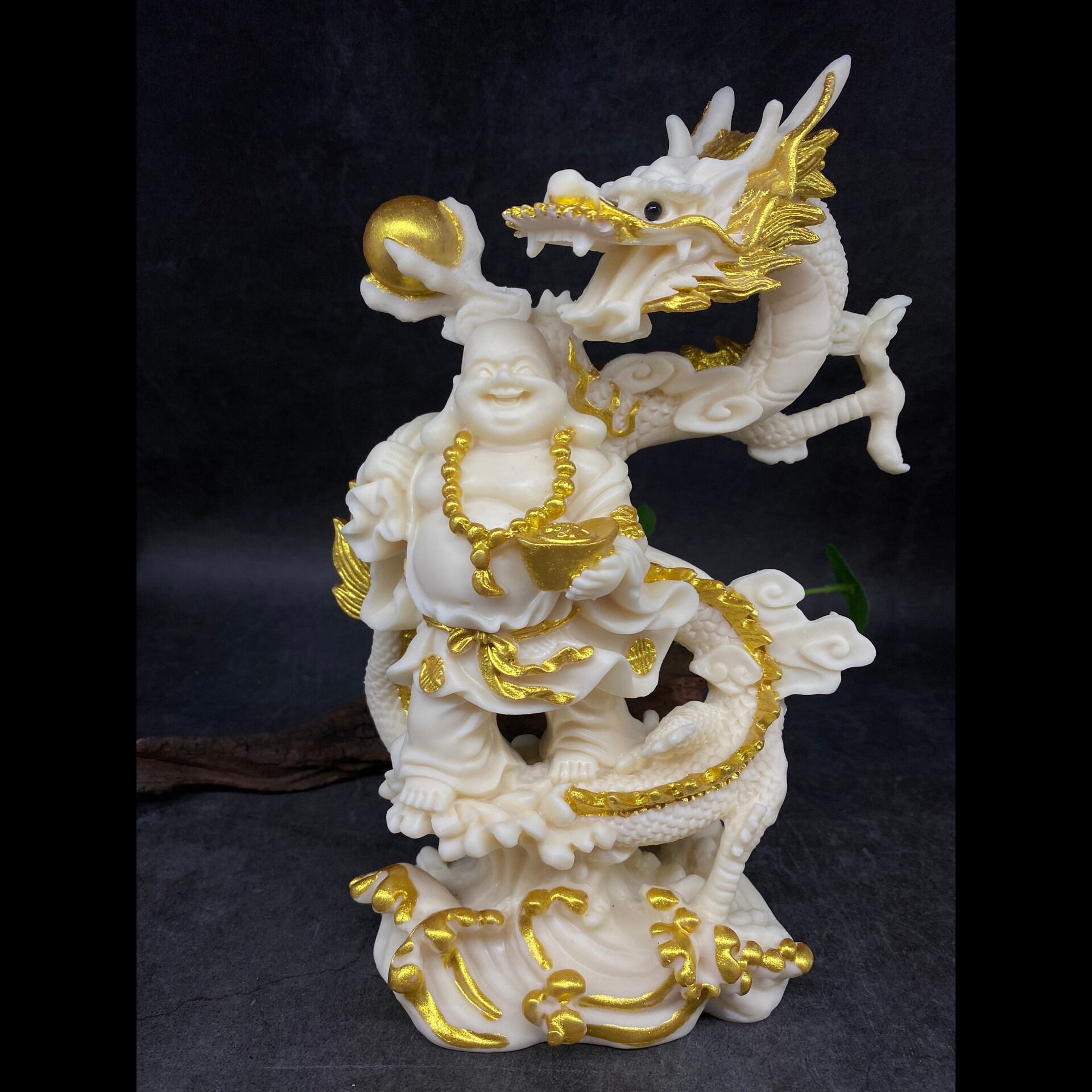 布袋様 ドラゴン 竜 龍 黄金 金 ゴールド 開運 運気 風水 玄関 昇運 風水 置物 縁起物 魔除け 七福神 ゴールド 豊 贈り物 プレゼント 仏像 神様 インテリア リビング 厳選 彫刻 | 幸せの置場