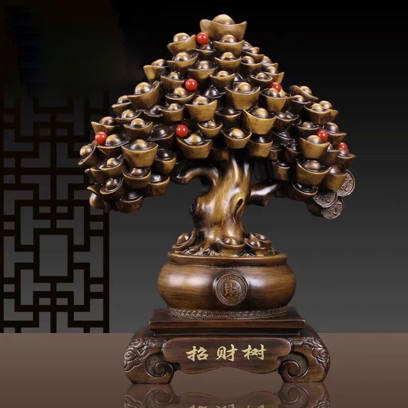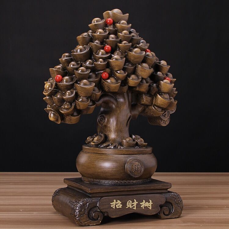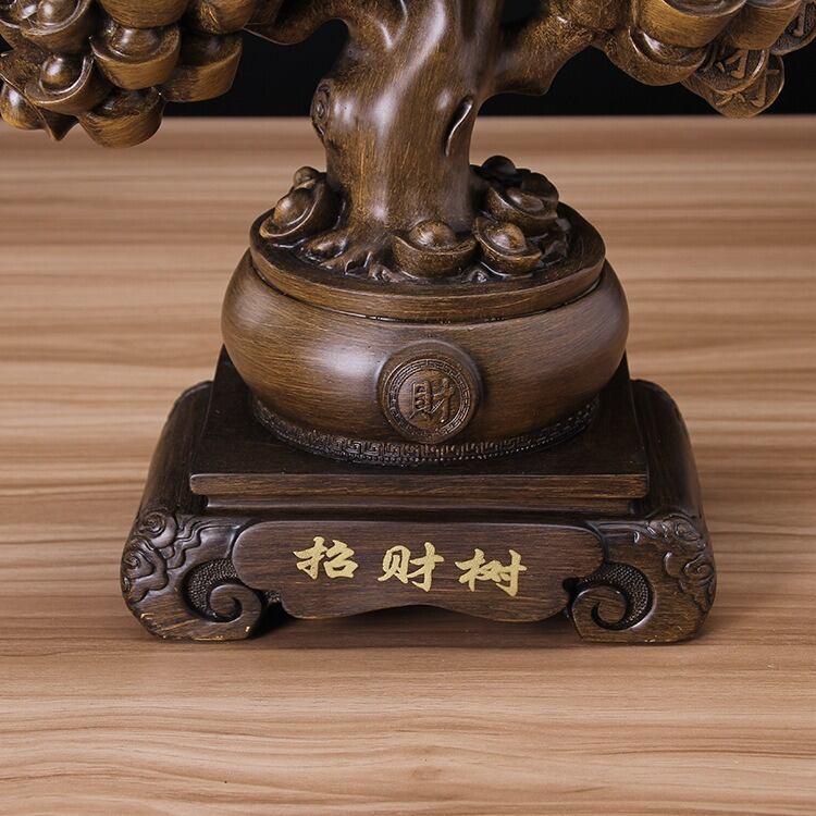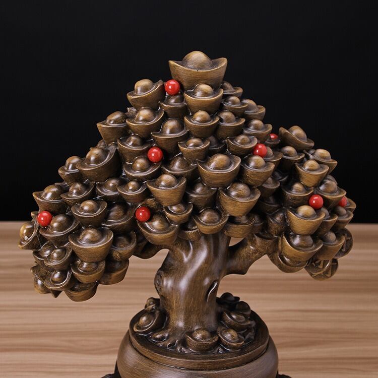 古くから繁栄と富を象徴する「金のなる木」のモチーフを取り入れた美しい置物です。このオブジェは、樹脂で作られており、精緻に作り込まれた元宝の装飾が特徴的です。元宝は、古代中国で富と幸運を象徴するアイテムとして知られ、風水においても大変縁起が良いとされています。