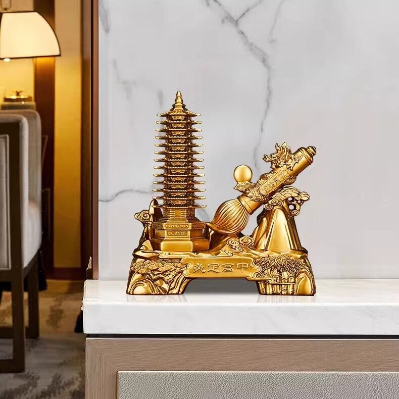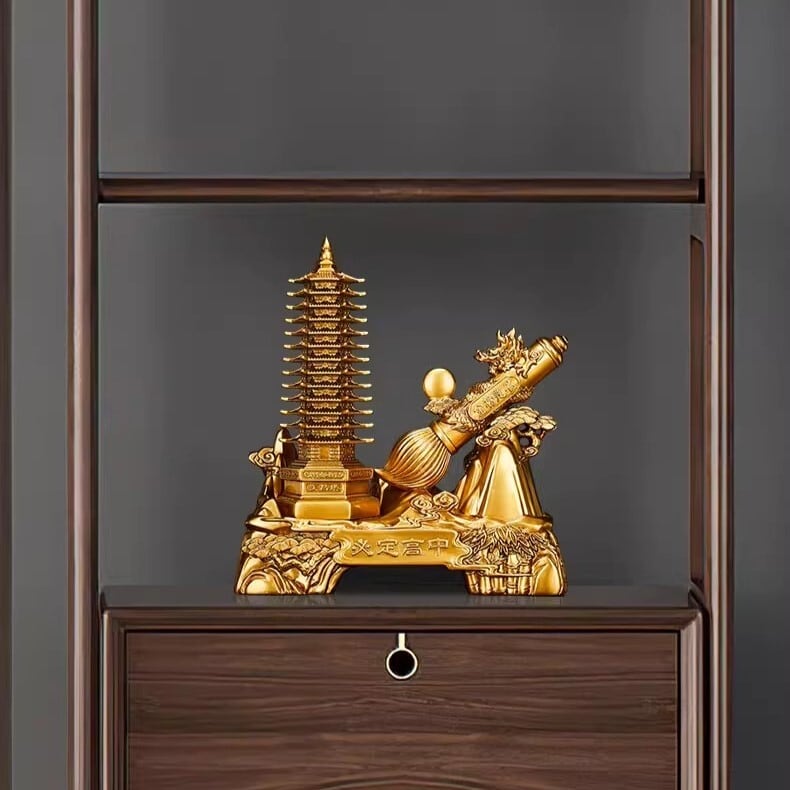 この文昌塔と筆の置物は、学業成就や仕事の成功を願う方に最適です。学びの場やオフィスに飾ることで、積極的なエネルギーを取り入れ、知識と創造力を高めるサポートをしてくれるかもしれません。また、金色の美しいデザインはインテリアにも最適で、空間に気品をもたらすことでしょう。信仰に基づいたこのアイテムは、日常生活にポジティブな影響を与える存在として、長く愛されてきたものです。