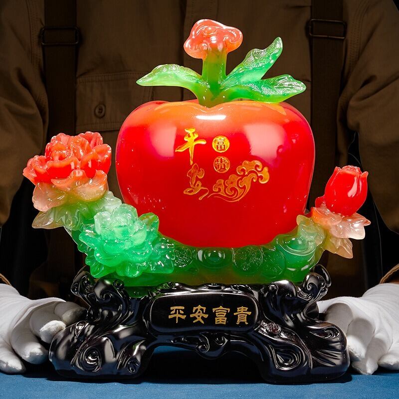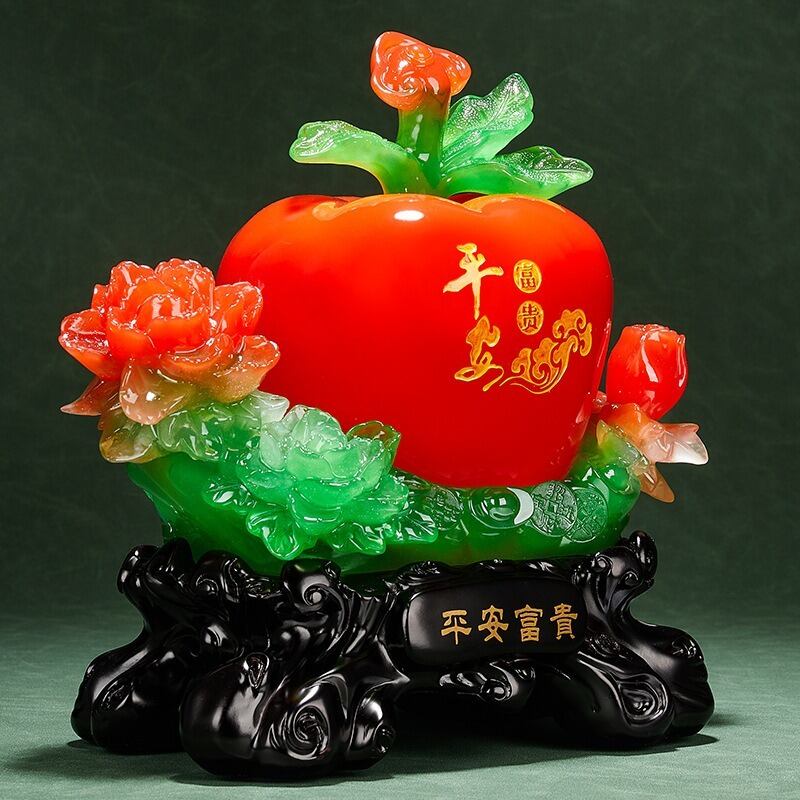 鮮やかな林檎をモチーフにしたこの置物は、美しさと縁起の良さを兼ね備えた一品です。林檎はその丸い形状と鮮やかな色彩から、古くから「調和」や「平和」を象徴するとされ、特に赤い林檎は「愛情」や「繁栄」をもたらすと信じられています。また、風水では林檎が家庭や仕事の人間関係を良好に保つ力を持つと言い伝えられています。