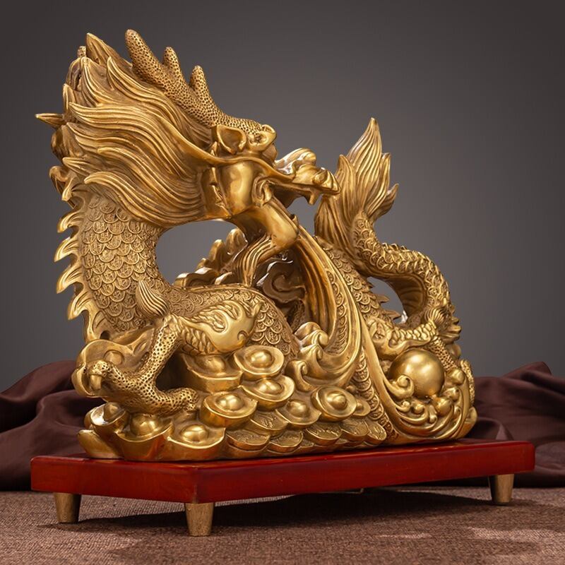 龍は古来より「力」「富」「繁栄」を象徴するとされ、風水においては強力な守護の存在とされています。この銅製の龍の置物は、豪華で華やかなデザインが特徴で、力強い姿と緻密な細工が見る者を惹きつけます。龍は運気を上昇させ、特に財運や成功運を呼び込むと信じられており、ビジネスや家庭の発展を願う方にとって魅力的な選択肢です。