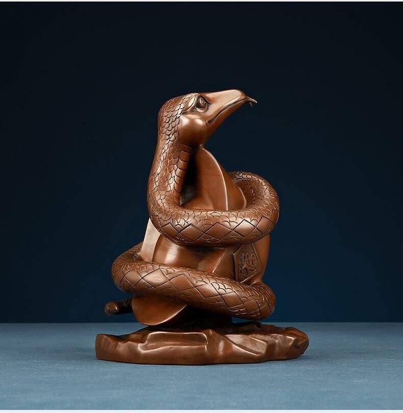 この置物は、精巧な彫刻と上質な銅の輝きが特徴で、インテリアとしても非常に魅力的です。オフィスやリビング、玄関など、特に財運を高めたい場所に飾ることで、空間に華やかさとポジティブなエネルギーをもたらしてくれるでしょう。また、蛇のしなやかな曲線美と元宝の力強いデザインが調和し、見る人に特別な印象を与えます。