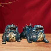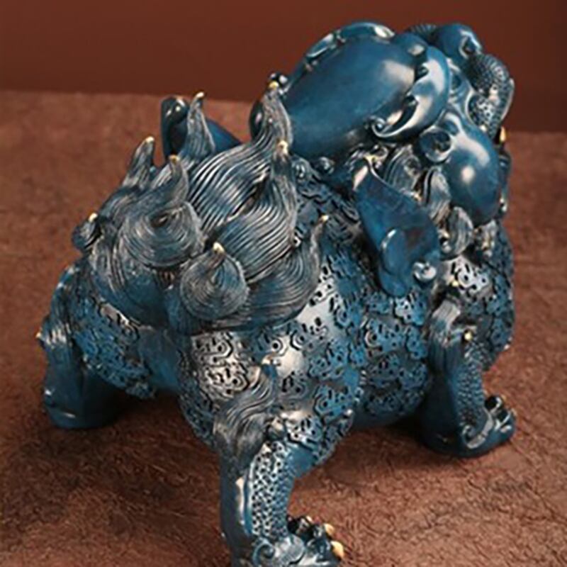 貔貅 ヒキュウ 銅製 ブルー 青 置物 オブジェ 厄除け 縁起物 開運 健康運 仕事運 家庭運 金運 商売繫盛 インテリア 玄関 リビング 風水 プレゼント オフィス 豪華