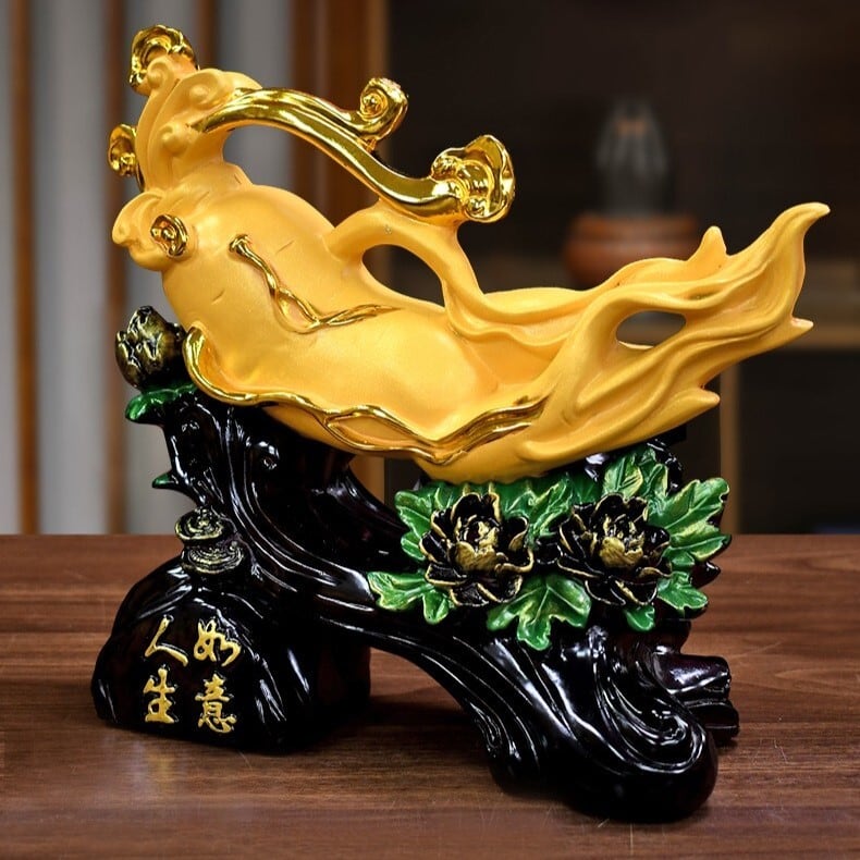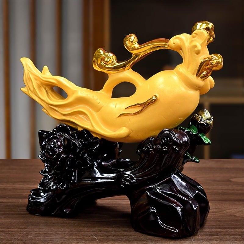 樹脂製でありながら、金色の仕上げが高級感を漂わせ、インテリアとしても非常に魅力的です。リビングや書斎に飾ることで、上品な雰囲気を作り出し、同時に縁起をかつぐアイテムとして存在感を発揮します。風水や縁起を重んじる方にとって、家に迎え入れたくなるオブジェです。