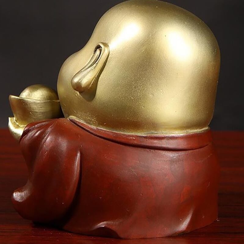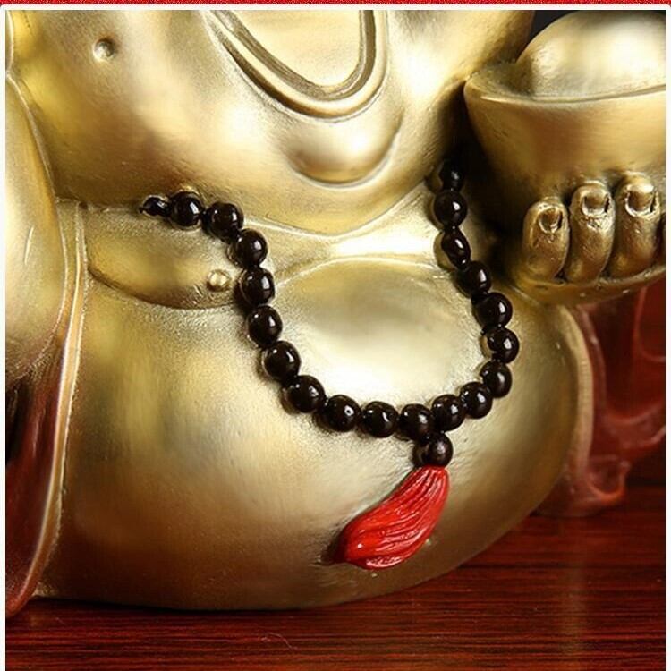 金色の布袋様は、豊かさや繁栄を象徴する色として古くから重んじられており、特に金運や仕事運を高めると信じられています。この美しい金色の布袋様は、その輝きが周囲の空間にポジティブなエネルギーを与え、運気の流れを良くする手助けをするかもしれません。商売をされている方や、これから新しい挑戦をしようとしている方にとっては、非常に心強い存在となるでしょう。