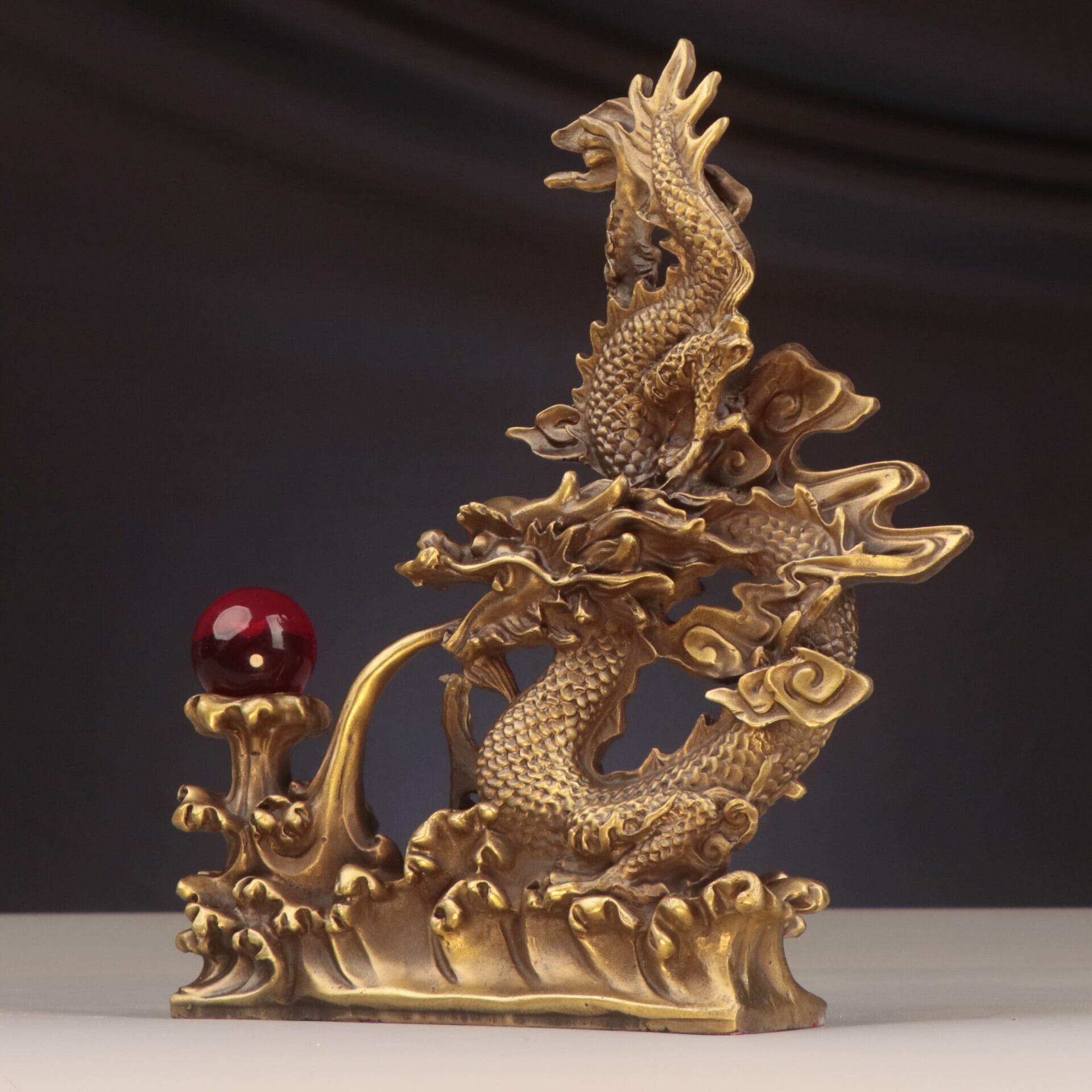 この銅製の豪華な龍の置物は、精緻な細工と輝く金属の質感が魅力的で、空間に豪華なエレガンスを加えます。銅という素材は、古くから繁栄とエネルギーの流れを整える力があるとされており、インテリアとしてだけでなく、風水やスピリチュアルな意味合いでも高い価値があります。