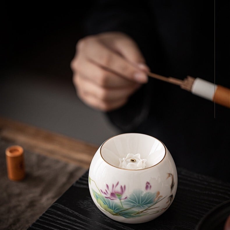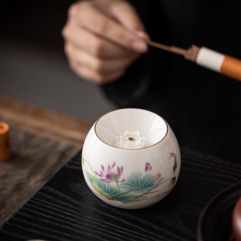 蓮の花は古代から多くの文化で神聖視されてきました。仏教では、蓮は「悟り」や「清浄」を象徴し、泥水から美しい花を咲かせることから、逆境を乗り越えて成長する力を意味しています。このお香立てに描かれた蓮の絵は、人生における困難を乗り越え、心の平安を求めるあなたをサポートしてくれると信じられています。
