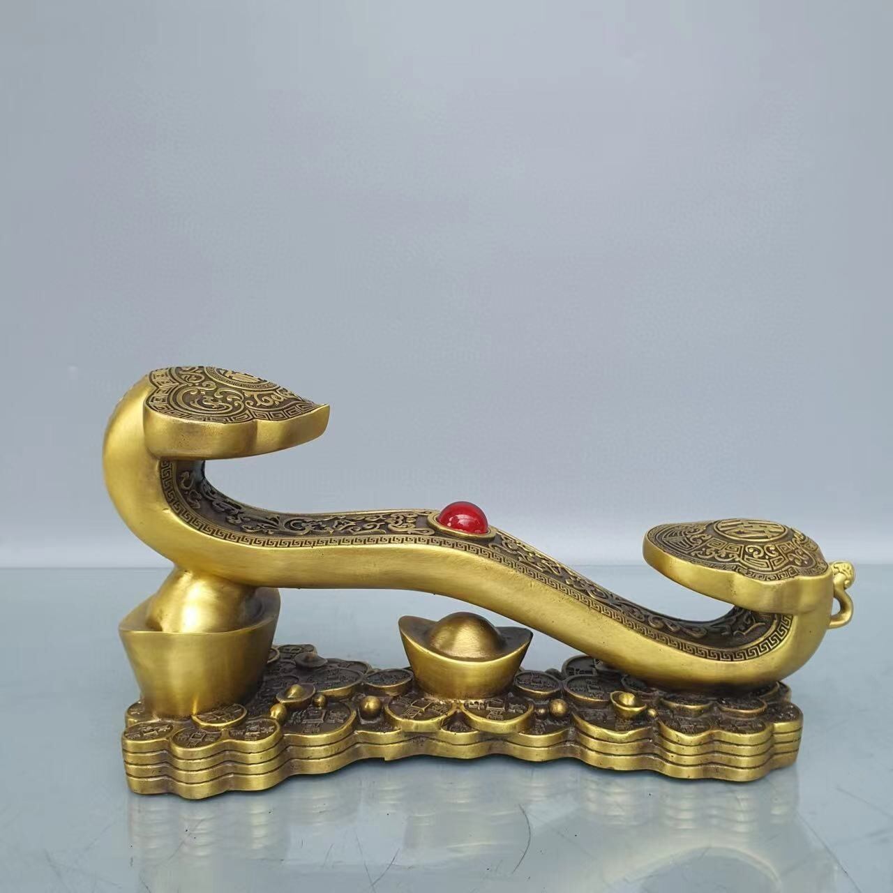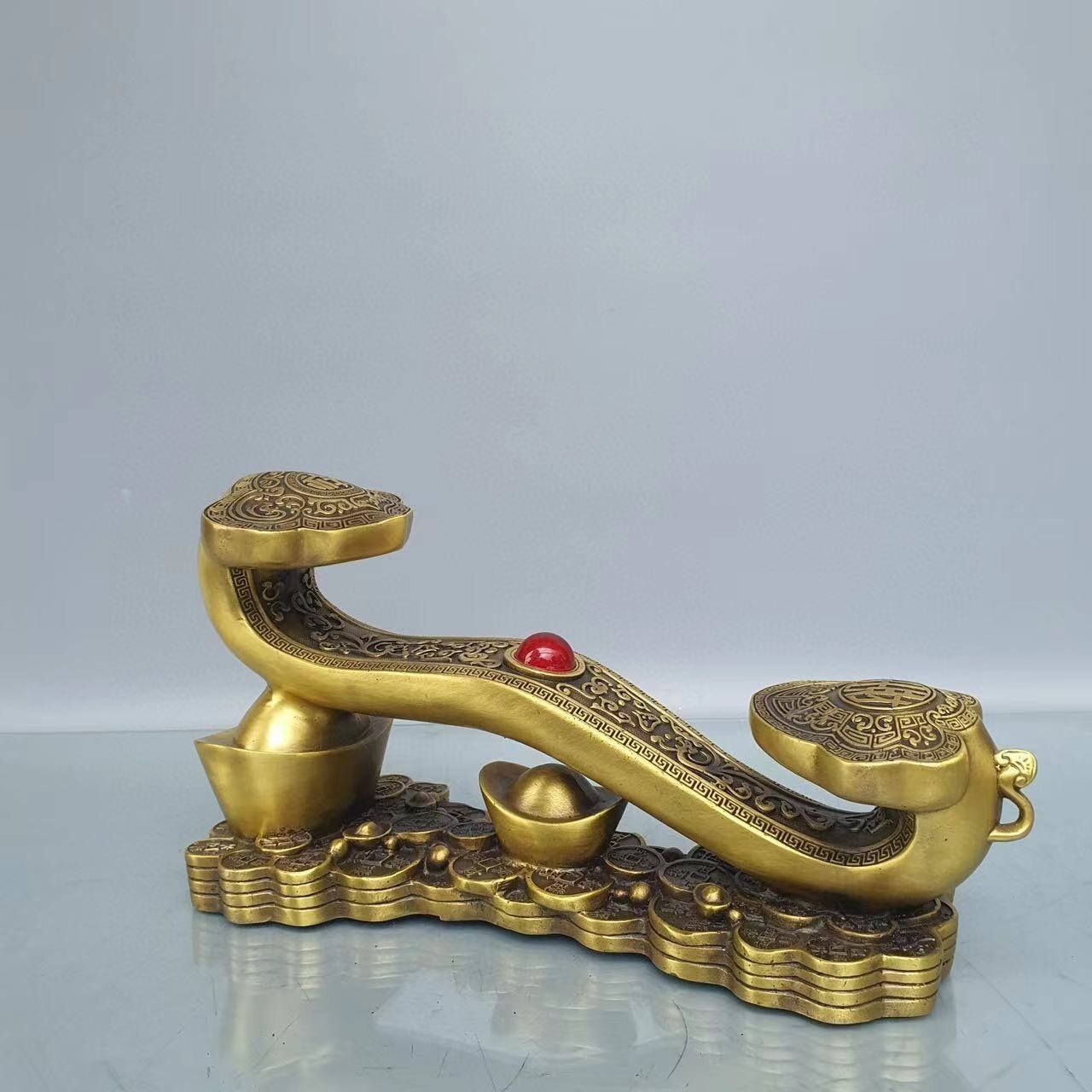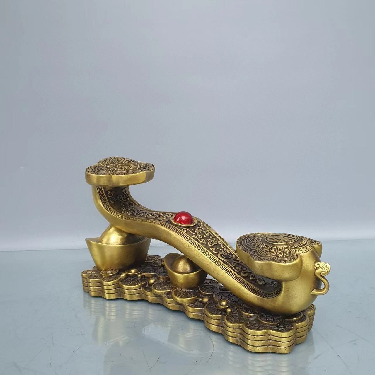 繁栄や財運を象徴する風水アイテムとして、古来より多くの人々に信仰されています。「如意」とは、思い通りに物事を成し遂げることを意味し、その形状は「願いがかなう」という意味合いを込められています。この金色の元宝(財宝)を手にした如意は、金運を招き入れ、経済的な成功や豊かさを引き寄せると言われています。