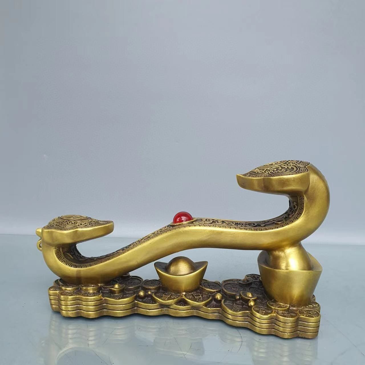 デザインは豪華で、金色の輝きが上品な印象を与え、どんなインテリアにもよく調和します。その存在感は、単なる装飾品に留まらず、持つ人に力を与え、精神的にも安定感をもたらすことでしょう。また、この置物は贈り物としても最適で、特にビジネスを行っている方や、新たなスタートを切る方にとって、幸運を招く手助けとなるかもしれません。