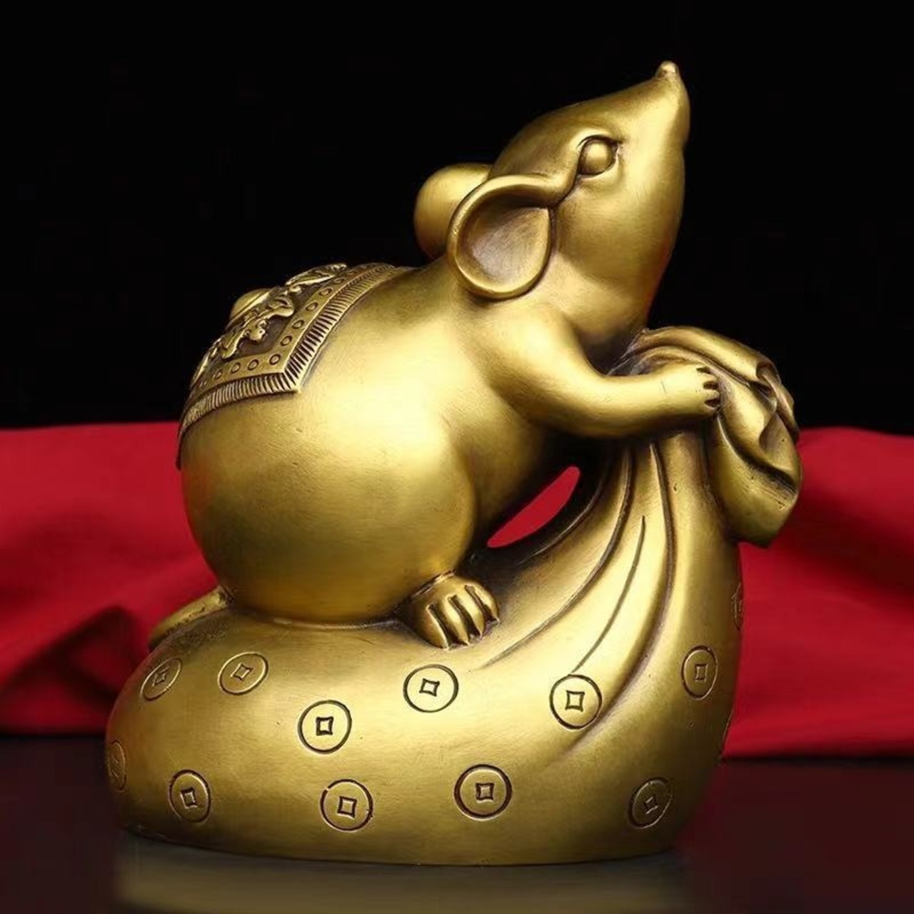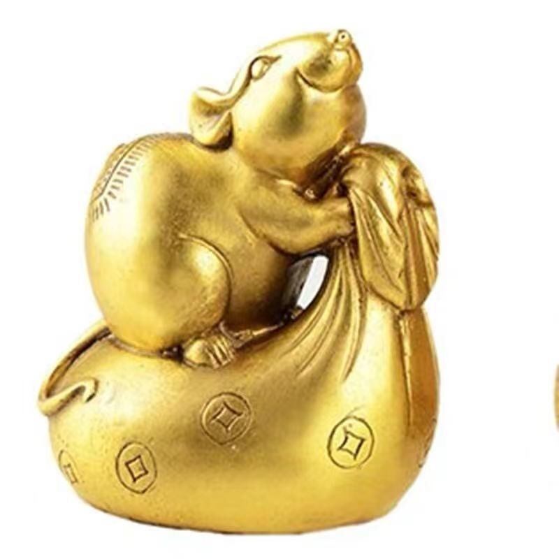 金色は、風水において金運を高める色とされており、この金色のネズミは、家庭やオフィスに置くことで、仕事や財運に良い影響を与えると信じられています。特に、商売繁盛や金運を願う方には最適なアイテムです。金袋を抱えたネズミの姿は、努力の結果としての成功や繁栄を象徴しており、日々の積み重ねによる豊かさを支えてくれるでしょう。