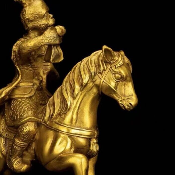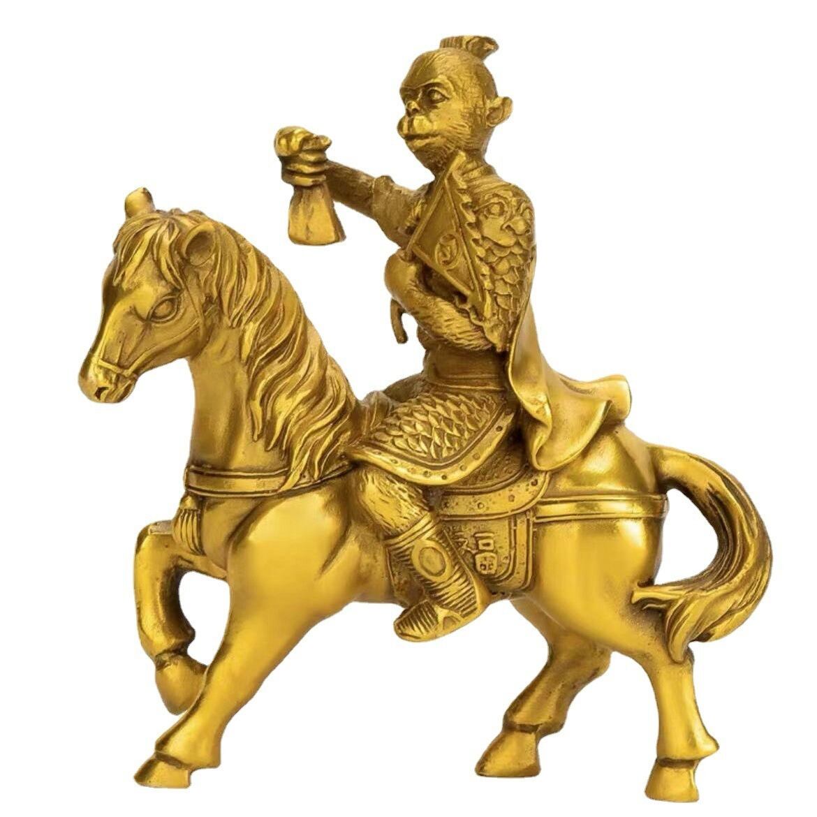 非常にユニークで象徴的なデザインの置物です。このオブジェは、中国の伝説的な英雄である孫悟空と、力強さを象徴する馬を組み合わせた作品です。孫悟空は『西遊記』に登場する、自由で勇敢なキャラクターであり、知恵と力を兼ね備えた神格化された存在として広く信仰されています。彼の勇気や機転、そして困難を乗り越える力は、多くの人々にインスピレーションを与え続けています。