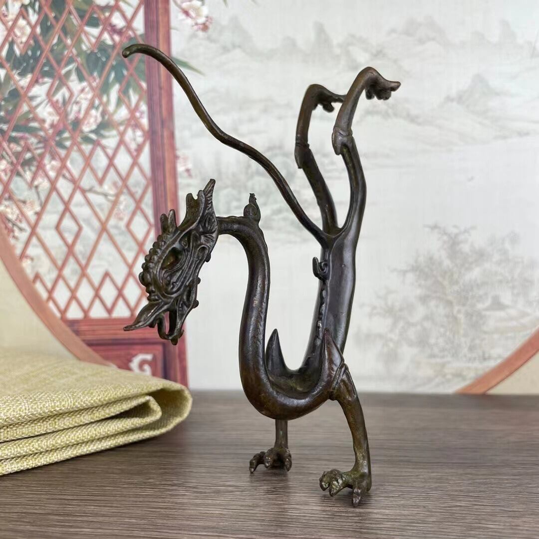 力強さと神秘を象徴するドラゴンの美しい置物です。このドラゴンは、古代中国や東洋の文化においては、繁栄や幸運、力の象徴として深い信仰を集めています。特に、ドラゴンは天と地をつなぐ存在とされ、邪気を払い、エネルギーを浄化する力を持つとも言われています。細長い形状のドラゴンは、その流れるようなラインが美しさと力強さを兼ね備えており、どの角度から見ても圧倒的な存在感を放ちます。