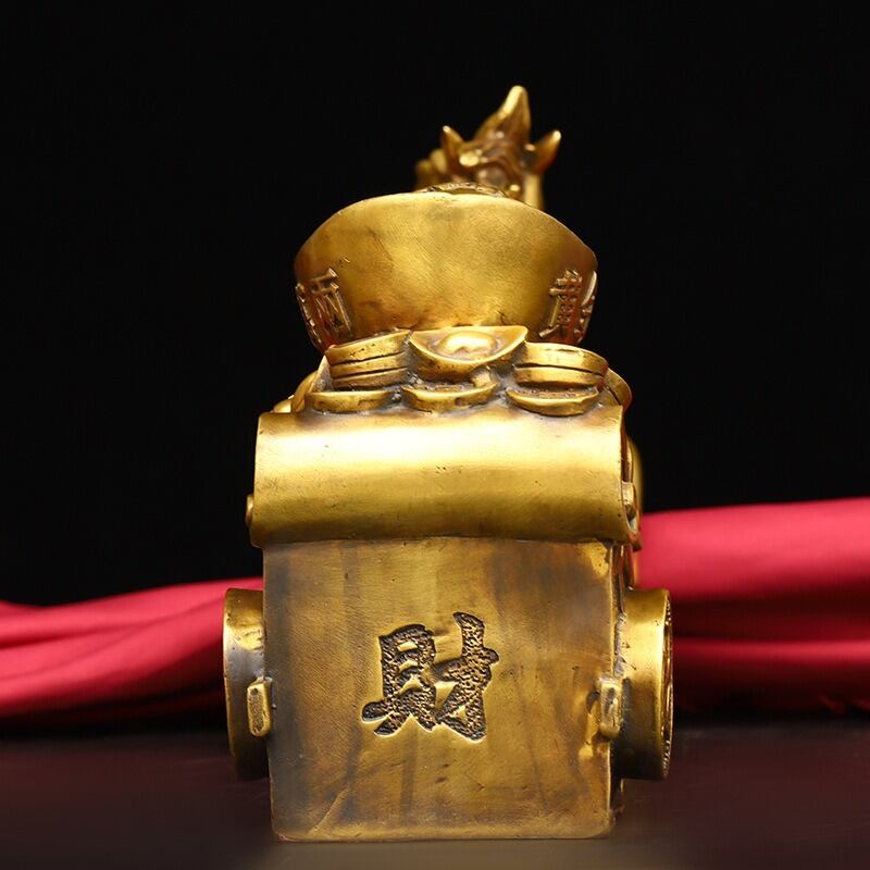 金色で仕上げられたこの銅製の置物は、その華やかな光沢が空間に豪華で落ち着いたエネルギーをもたらし、ビジネスの現場や家庭において金運を引き寄せる手助けになるかもしれません。特にオフィスや商売繁盛を願う場所に飾ることで、ポジティブなエネルギーを呼び込み、繁栄と成長をサポートするアイテムとして重宝されます。