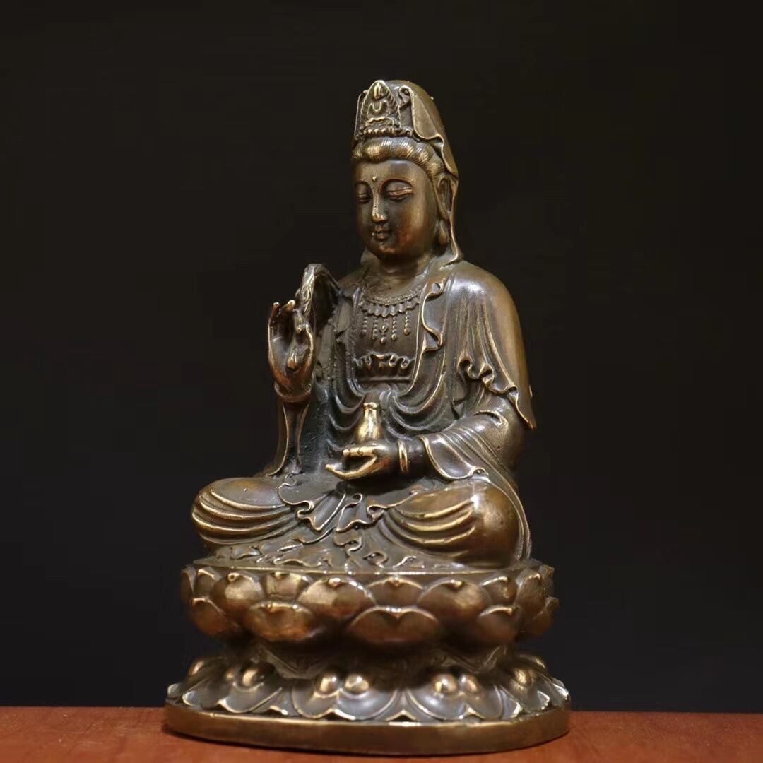 南シナ海観音は、観音菩薩の化身であり、慈悲と平和を象徴する存在として多くの信仰を集めています。観音菩薩は、広く「救済の神」として知られ、人々の悩みや苦しみを和らげる力があるとされています。特にこの『南シナ海観音の置物』は、銅製で精緻に作られており、その美しいデザインと力強い存在感が、空間に神聖で穏やかなエネルギーをもたらします。