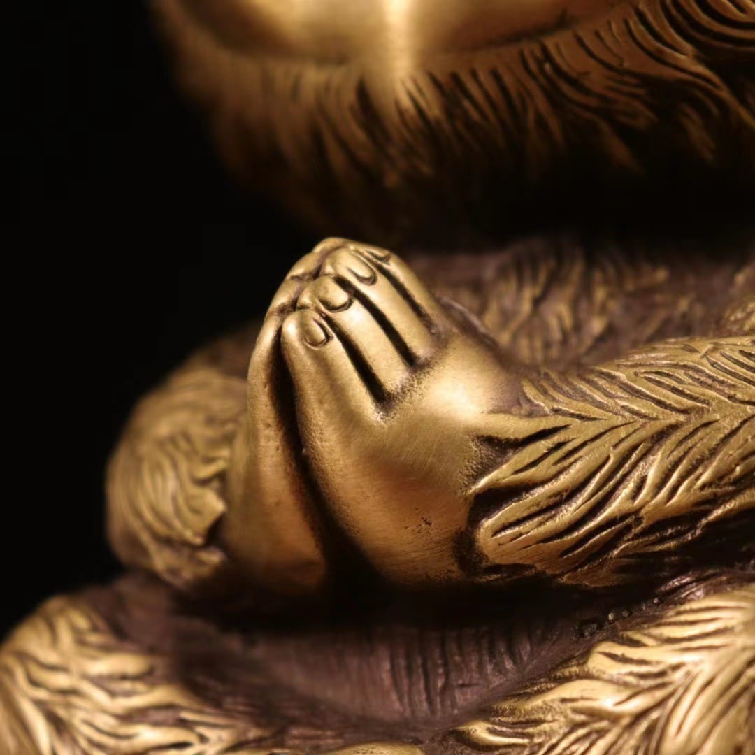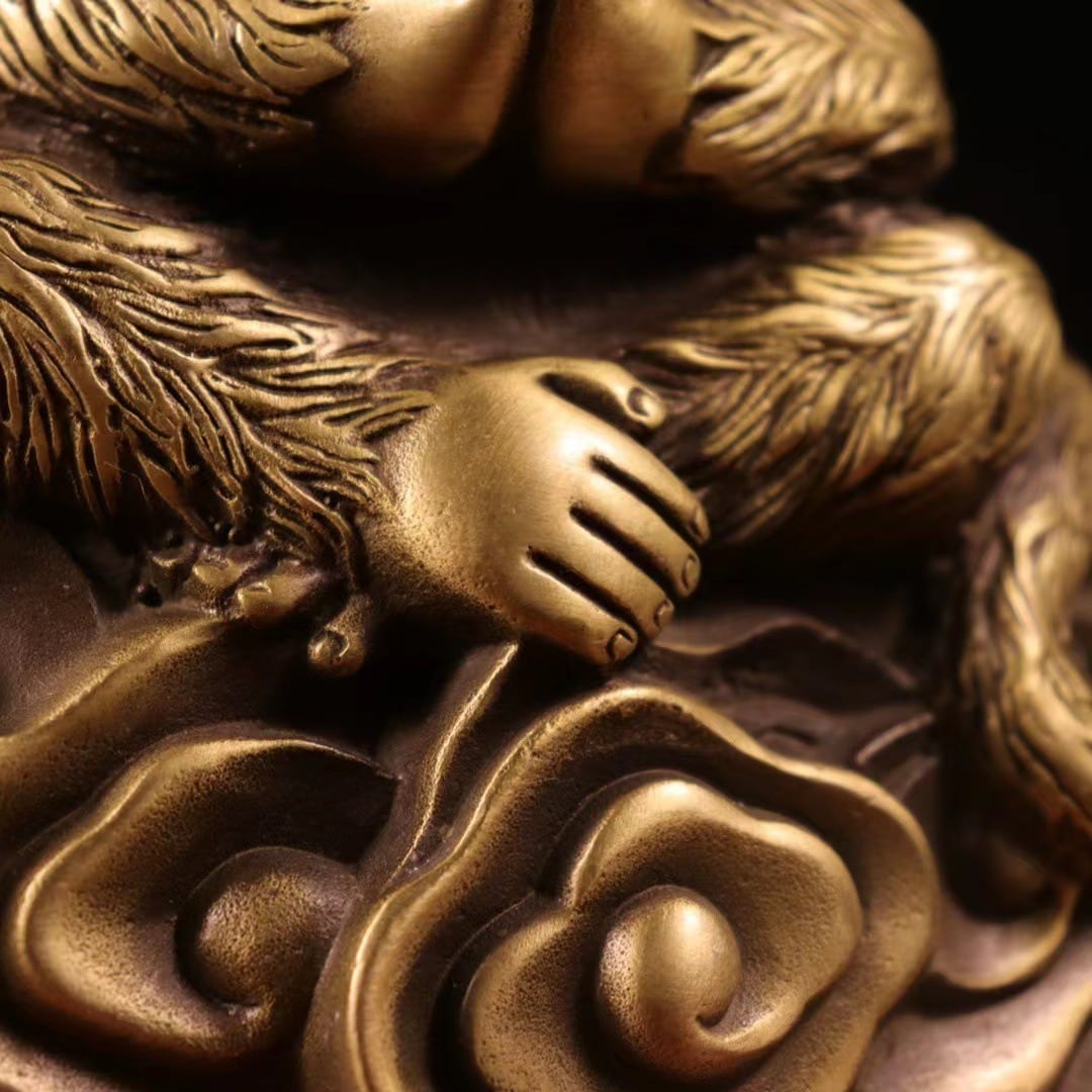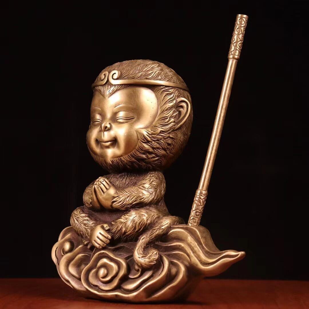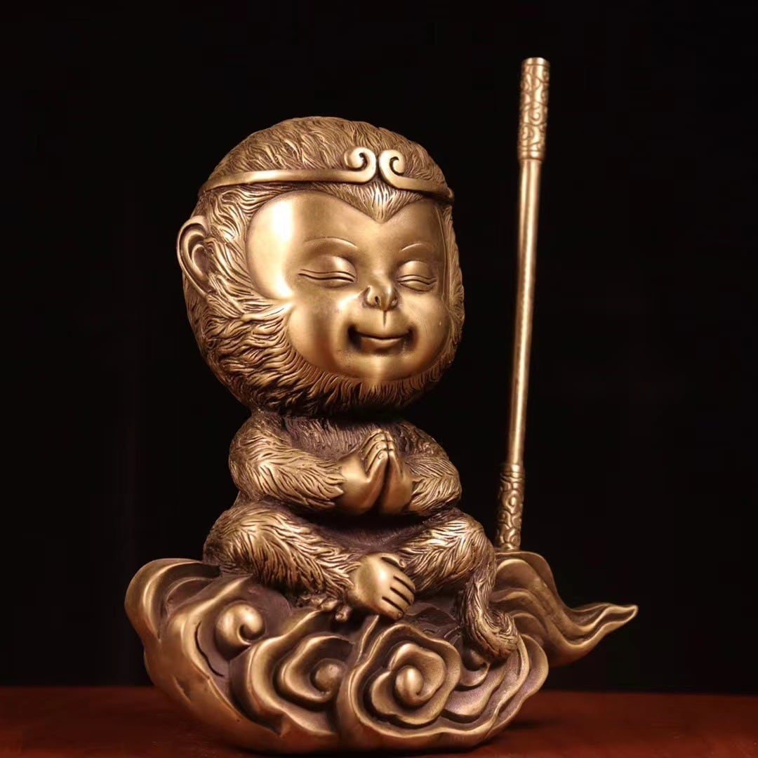銅製で作られたこの置物は、金属の温かみと重厚感が感じられ、長い年月を経てもその美しさが色あせることはありません。孫悟空は、困難を乗り越える力を持つとされ、特にビジネスや家庭の困難に直面している人々にとって、希望を与える象徴として飾られることが多いです。古来より、孫悟空はその持ち前の機転と勇気で、さまざまな試練を克服してきたことから、試練を乗り越える力を求める方々にとって、心強い味方となることでしょう。