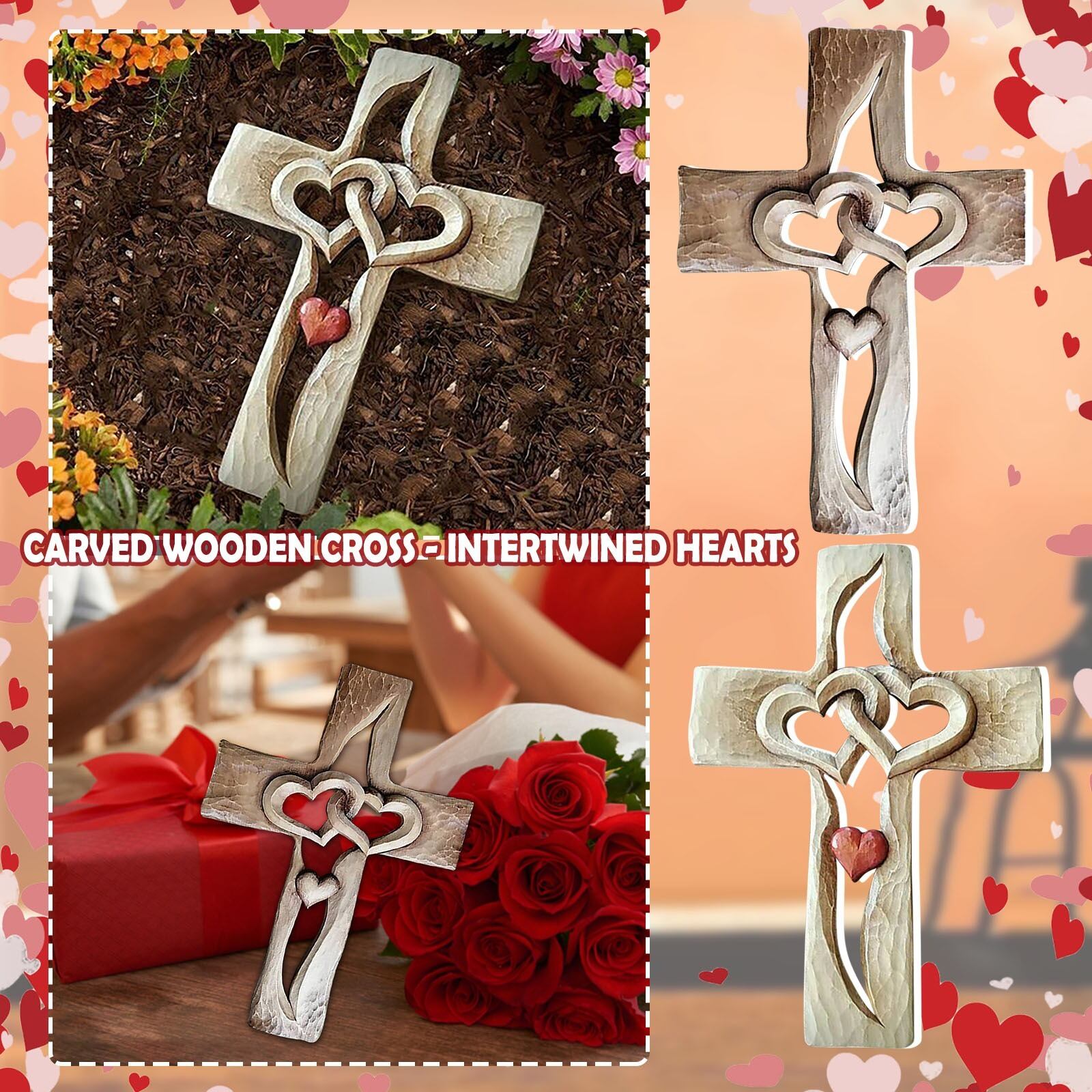 あなたの大切な空間に、この木製十字架とハートの彫刻がもたらす深い意味を感じてみてください。信仰と愛を象徴するこの美しいオブジェが、心に安らぎと力を与えることでしょう。