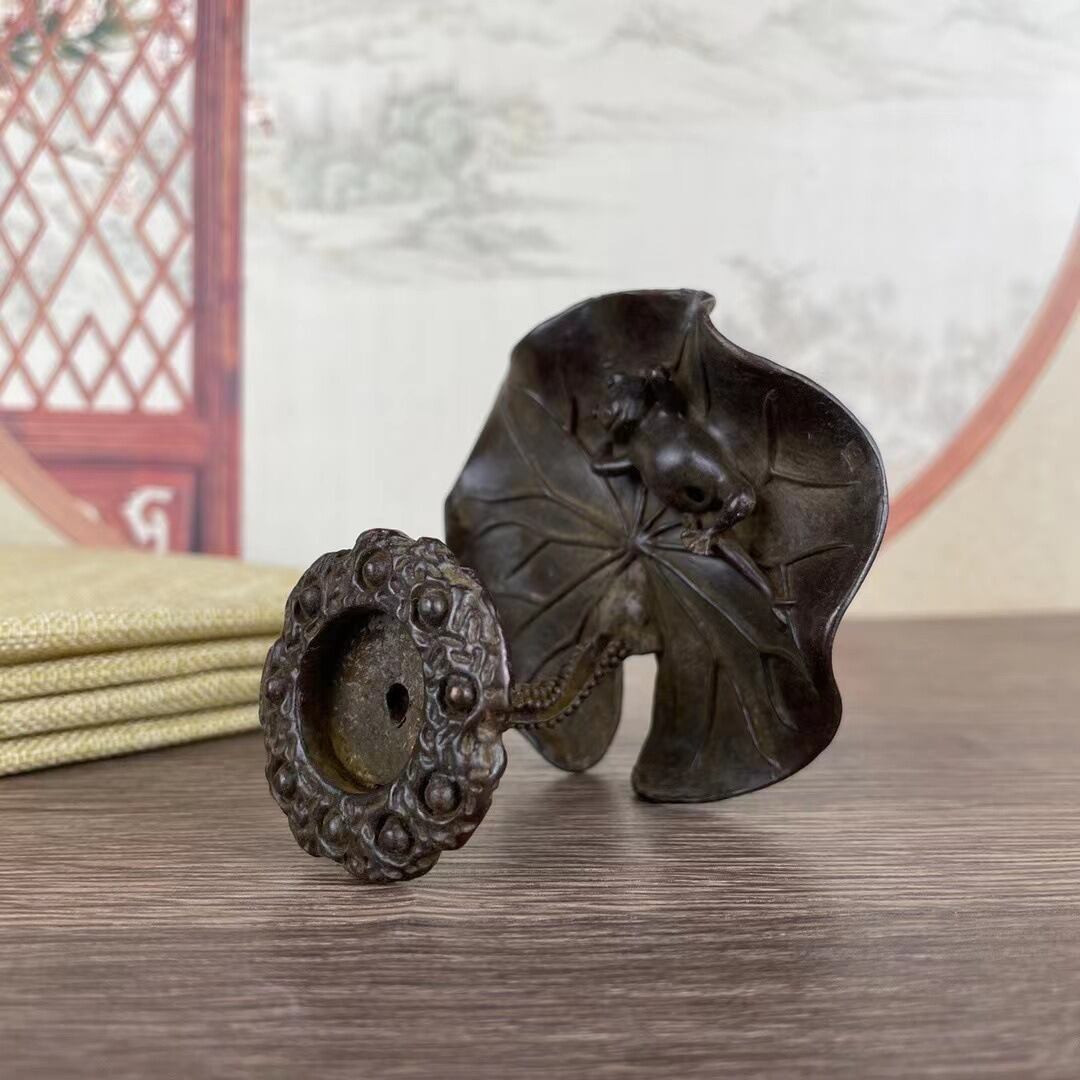 蓮の花は、古来より多くの文化で「浄化」と「再生」のシンボルとして崇められています。泥の中から美しい花を咲かせるその姿は、逆境を乗り越えて新しい希望を見出す力を象徴しており、精神的な成長や人生の転機において非常に意味深い存在です。また、蓮の実は繁栄や豊かさを象徴するため、蓮の葉と蓮の実を一緒にデザインしたこの置物は、特に運気を向上させる効果が期待できると信じられています。
