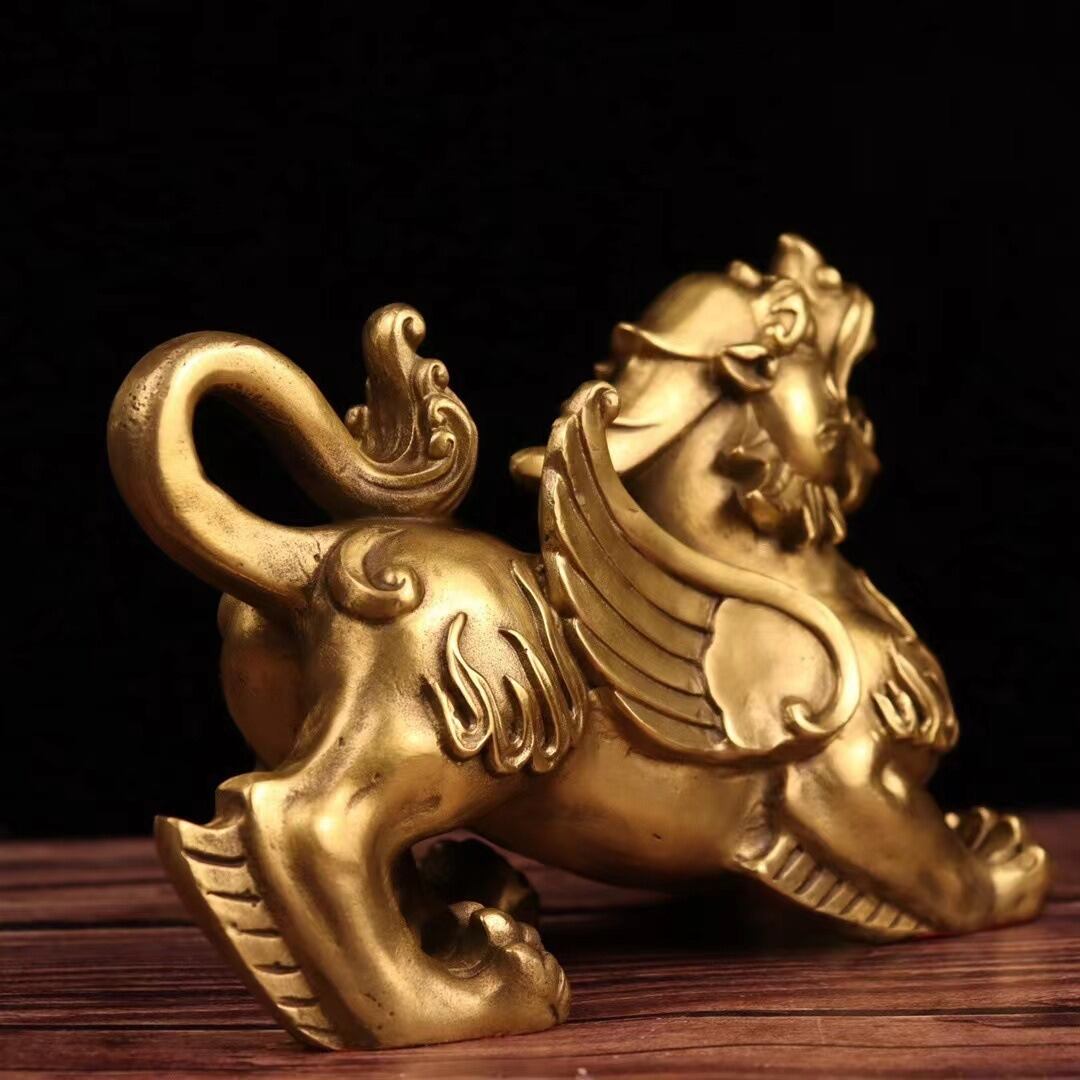 金色に輝く精巧なデザインが特徴で、貔貅の力強さと優雅さを見事に表現しています。金色は「富」や「繁栄」を象徴する色であり、貔貅と相まって、その力をさらに引き立てます。風水において、貔貅は家庭やオフィスに飾ることで、金運や事業繁盛をサポートするアイテムとされています。