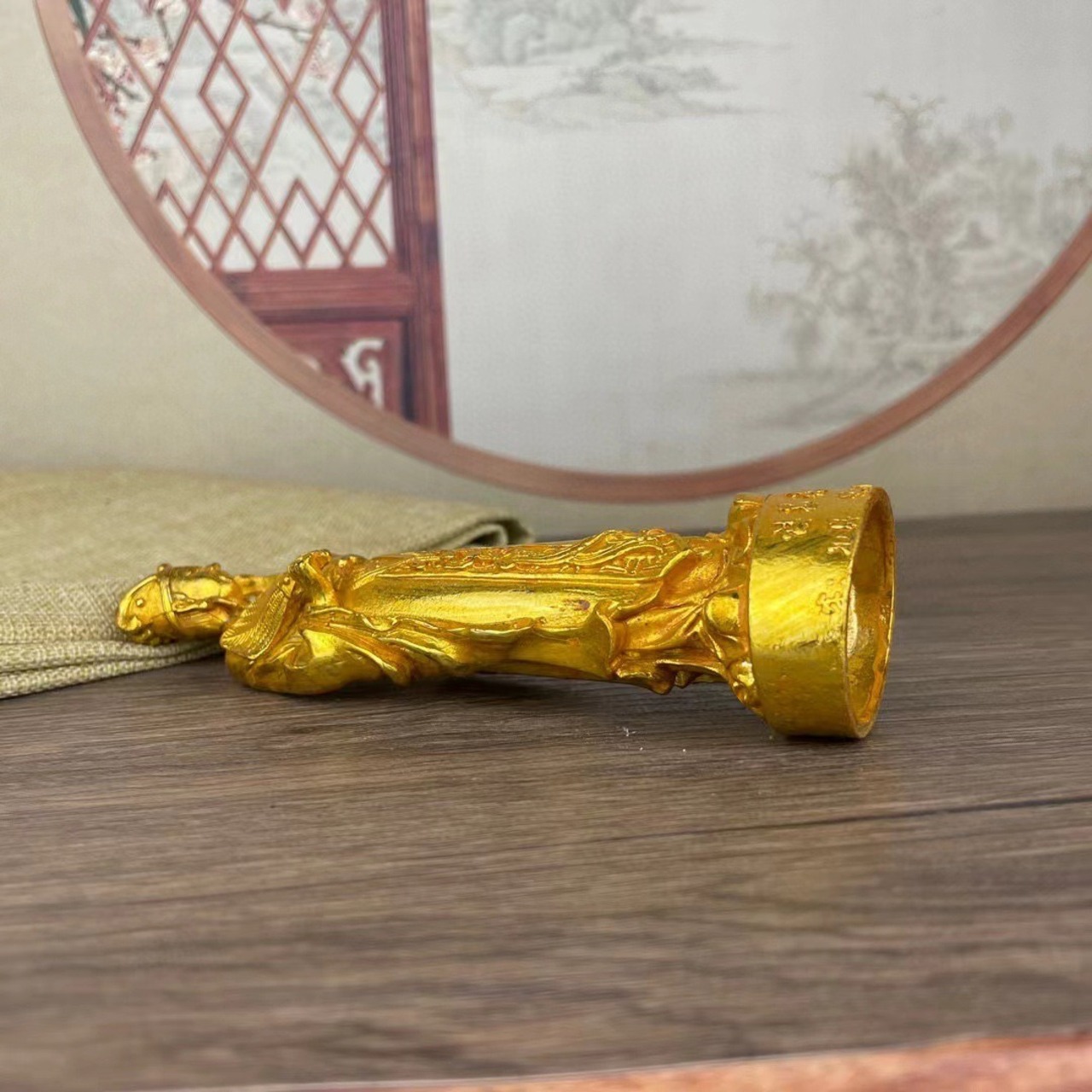また、細部まで丁寧に作られたこの置物は、インテリアとしても美しい存在感を放ち、どんな空間にも高貴で落ち着いた雰囲気を与えます。単なる装飾品としてだけでなく、心の支えとなり、前向きなエネルギーを注いでくれる大切な存在となることでしょう。