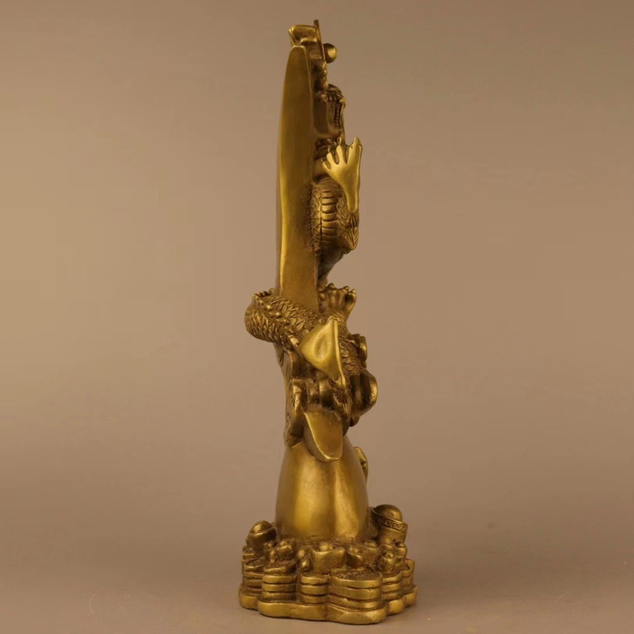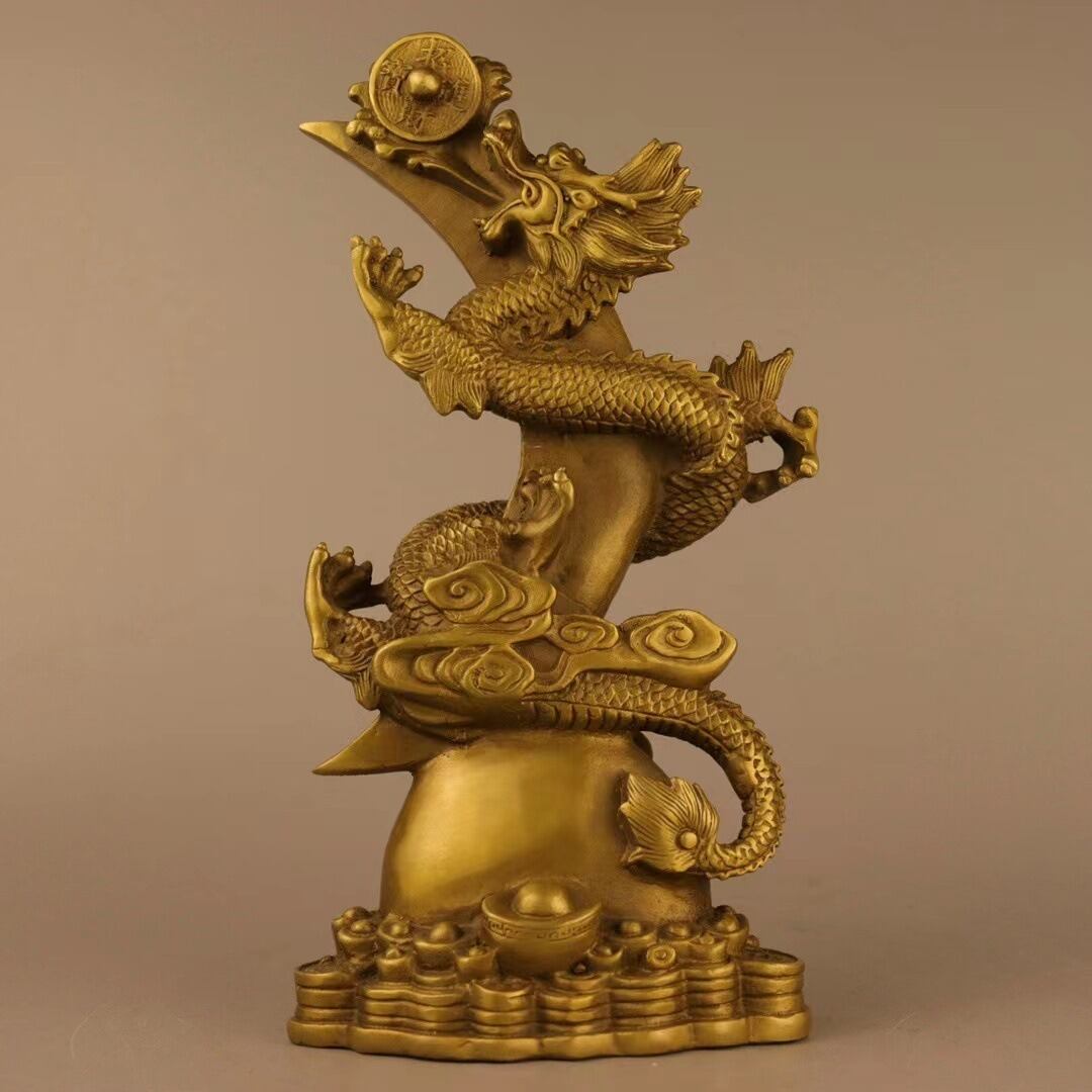 その精緻な作りと金色の輝きは、単なる装飾品に留まらず、持つ者の気持ちを高揚させ、運気を好転させる力があると信じられています。このオブジェをお迎えすることで、あなたの生活空間に強力で神聖なエネルギーが流れ込むことでしょう。上質な銅製で作られ、金色で美しく仕上げられたドラゴンは、単なるインテリアを超え、心に安定と繁栄をもたらしてくれることでしょう。