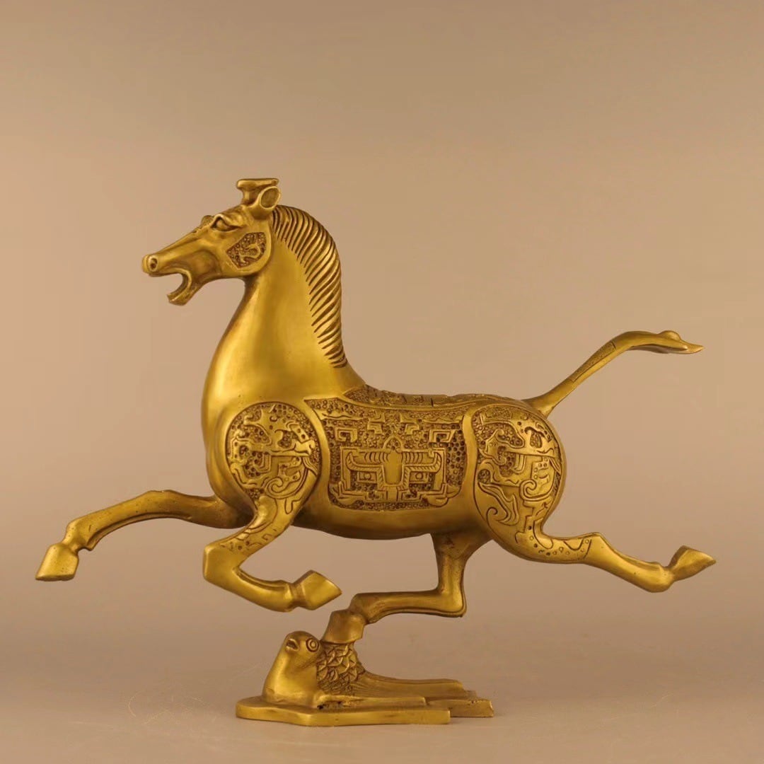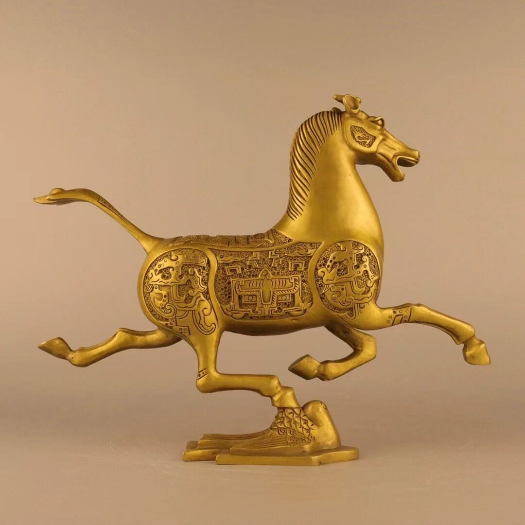 風水やスピリチュアルにおいて長い間高く評価されてきたアイテムで、金色の輝きが豪華さと繁栄を象徴しています。馬は中国をはじめ多くの文化で「成功」「発展」「自由」の象徴とされ、特に金色の馬は商売繁盛や事業の成功を願う方々に人気があります。