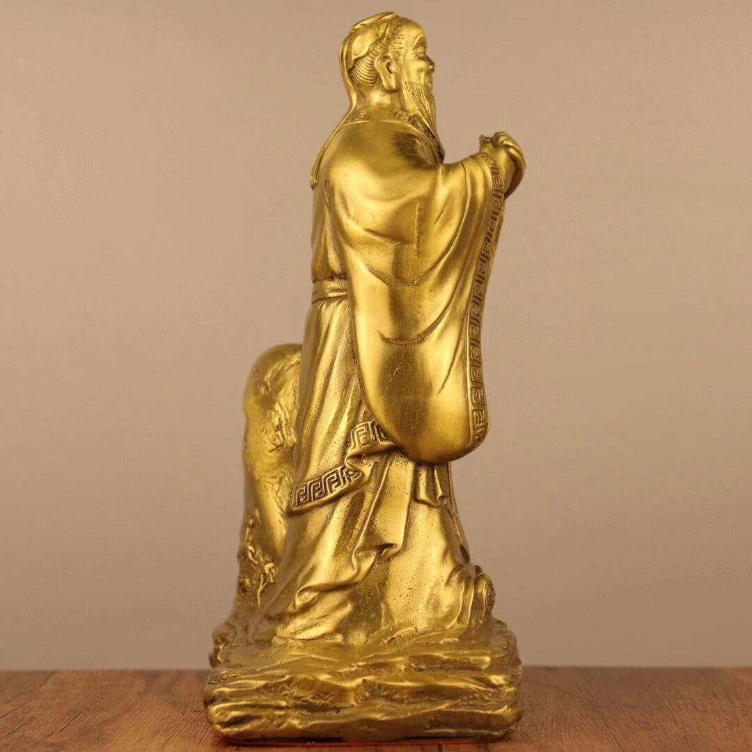 この金色の銅製の孔子像は、知恵と成功、そして人生の指針を象徴しています。孔子を飾ることにより、家庭やオフィスにおいてポジティブなエネルギーをもたらし、心の平穏や学問、仕事の成就を願う方々に力を与えると信じられています。また、風水の観点からも、孔子像は安定と繁栄を象徴し、特に教育や学問、ビジネスの成功を望む方々に良い運気を呼び込むとされています。