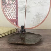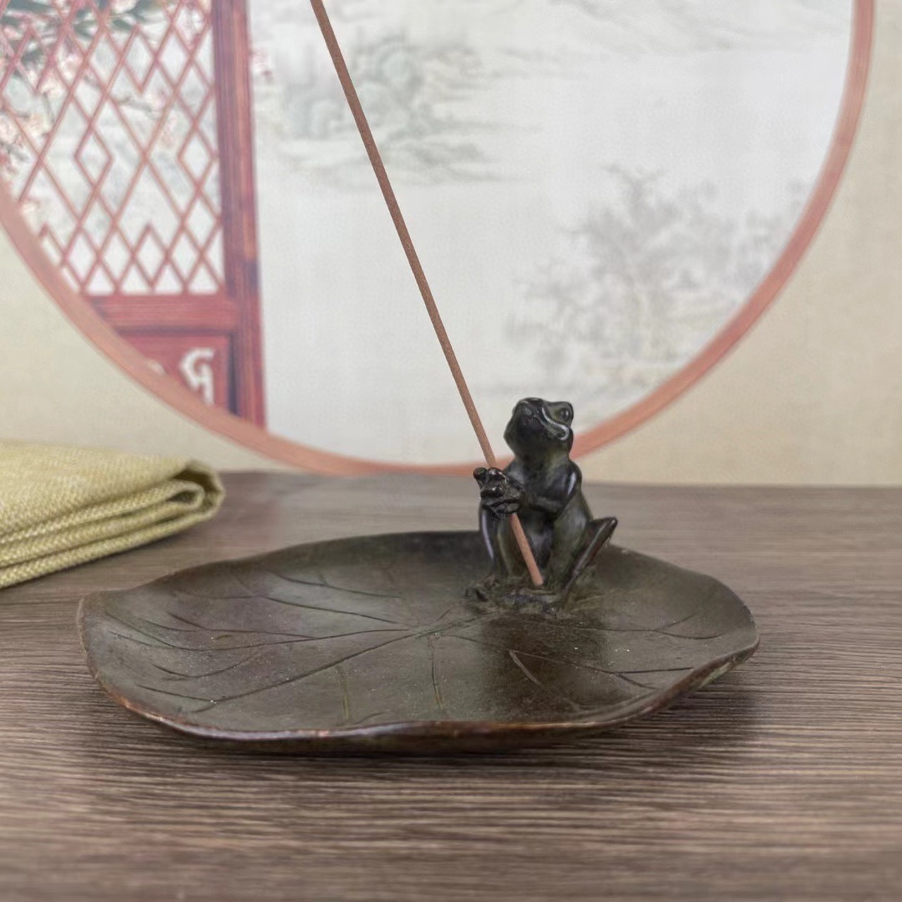 風水やスピリチュアルな信仰において非常に縁起の良いアイテムです。このお香立ては、銅製で精緻に作られており、見た目にも美しく、持ち主の空間に穏やかな存在感を与えます。蛙は古くから「金運」や「繁栄」を象徴する動物とされており、特にお金を引き寄せる力を持つと信じられています。